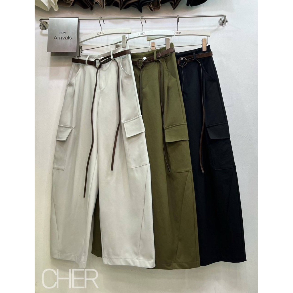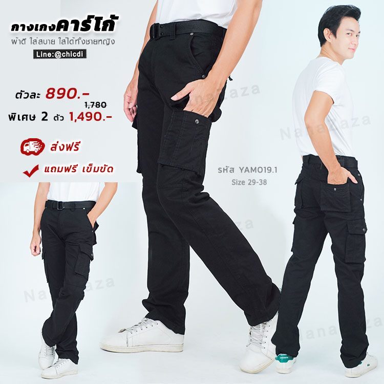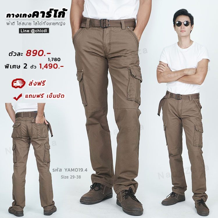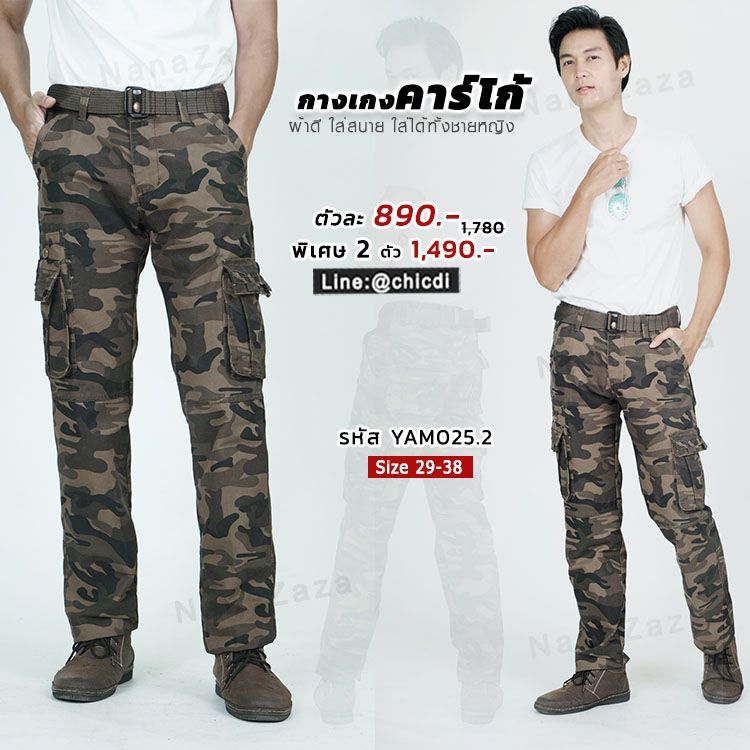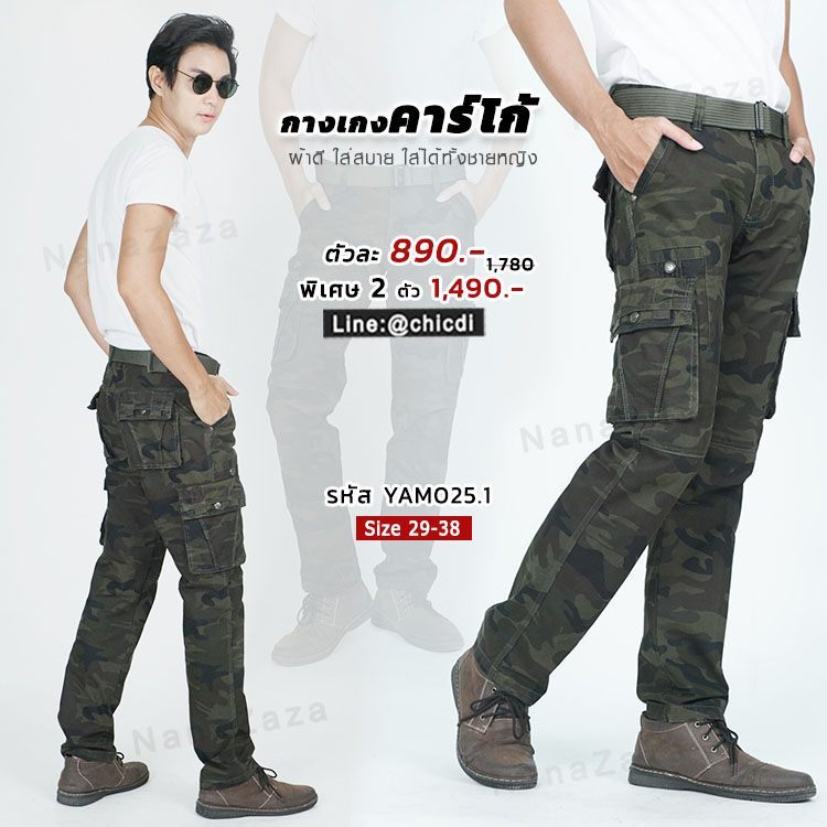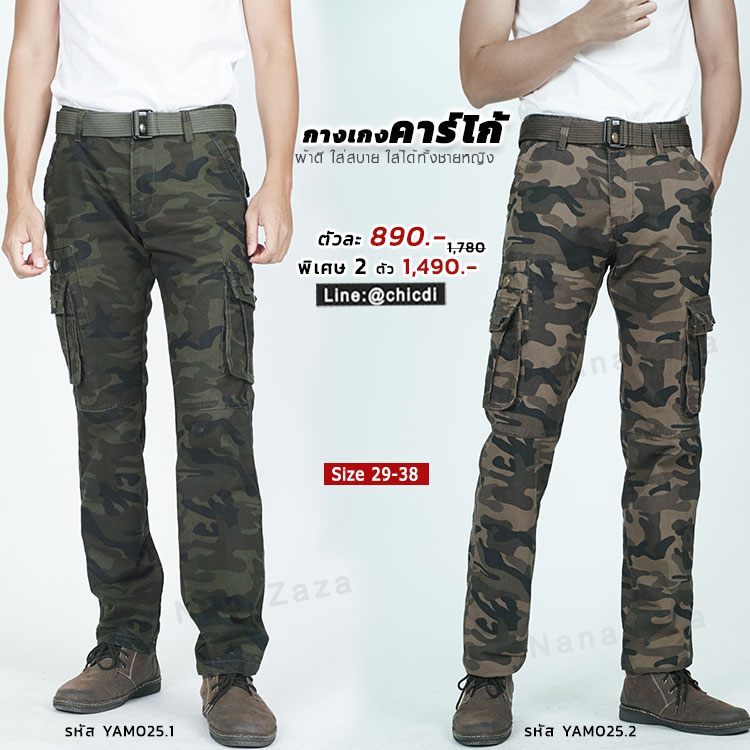 (พร้อมส่ง) NANAZAZA – YAM025-YAM019 คาร์โก้ลายพราง เนื้อผ้ายืดหยุ่นแถมเข็มขัด ทรงกระบอก