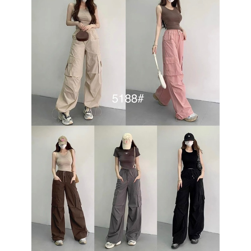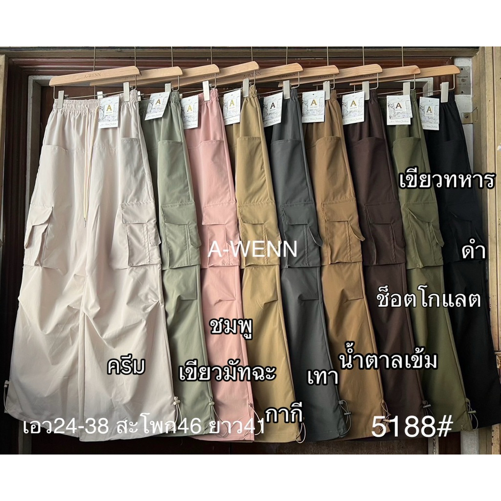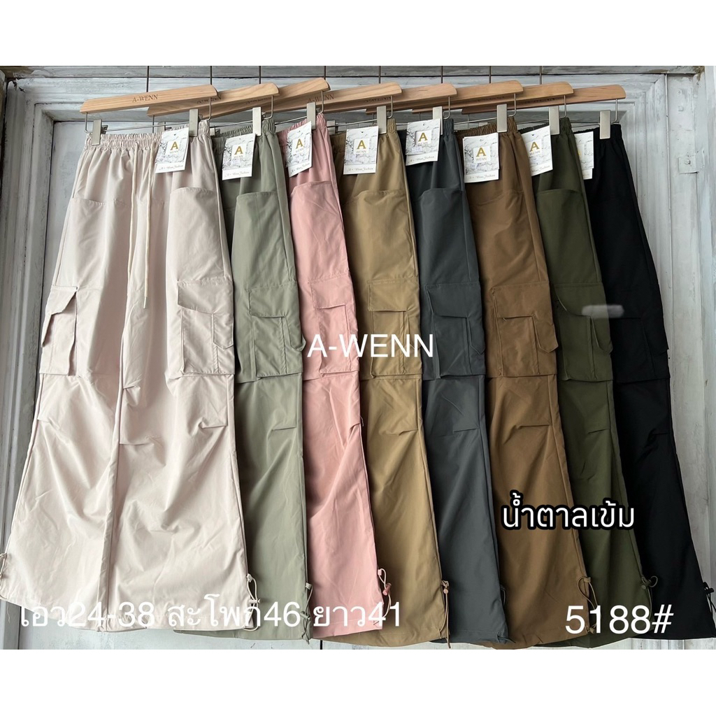 5188กางเกงคาร์โก้ขากระบอกใหญ่ฟรีไซส์ปลายขาปรับใส่แบบขาจั๊มได้ขาปล่อยได้งานป้ายA-WANNรหัส5188