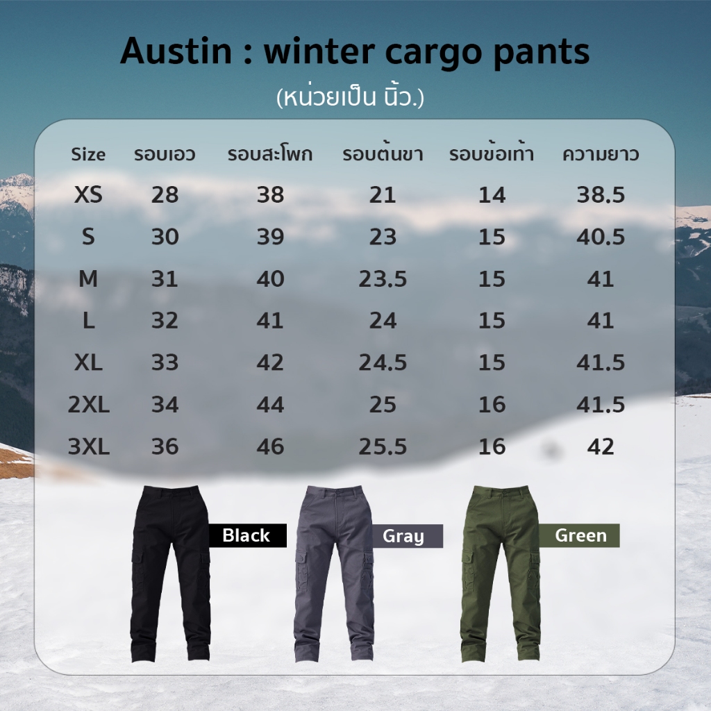 Austin : winter cargo pants คาร์โกลุยหนาว อบอุ่นแต่ยังดูเท่ ดีไซน์ทะมัดทะแมง กันหนาวได้ถึงอุณหภูมิติดลบ