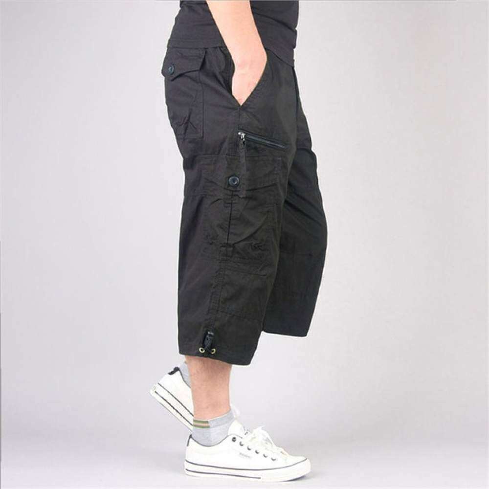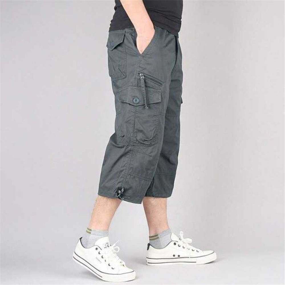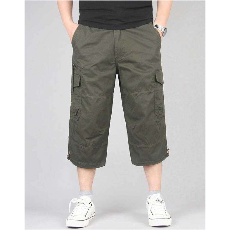 กางเกงขายาวความยาวคาร์โก้ผู้ชายฤดูร้อนหลายกระเป๋าลําลองผ้าฝ้ายยืดหยุ่น คาปริ กางเกงผู้ชายทหารยุทธวิธีสั้นกางเกงร้อน 5เอ็กแอล