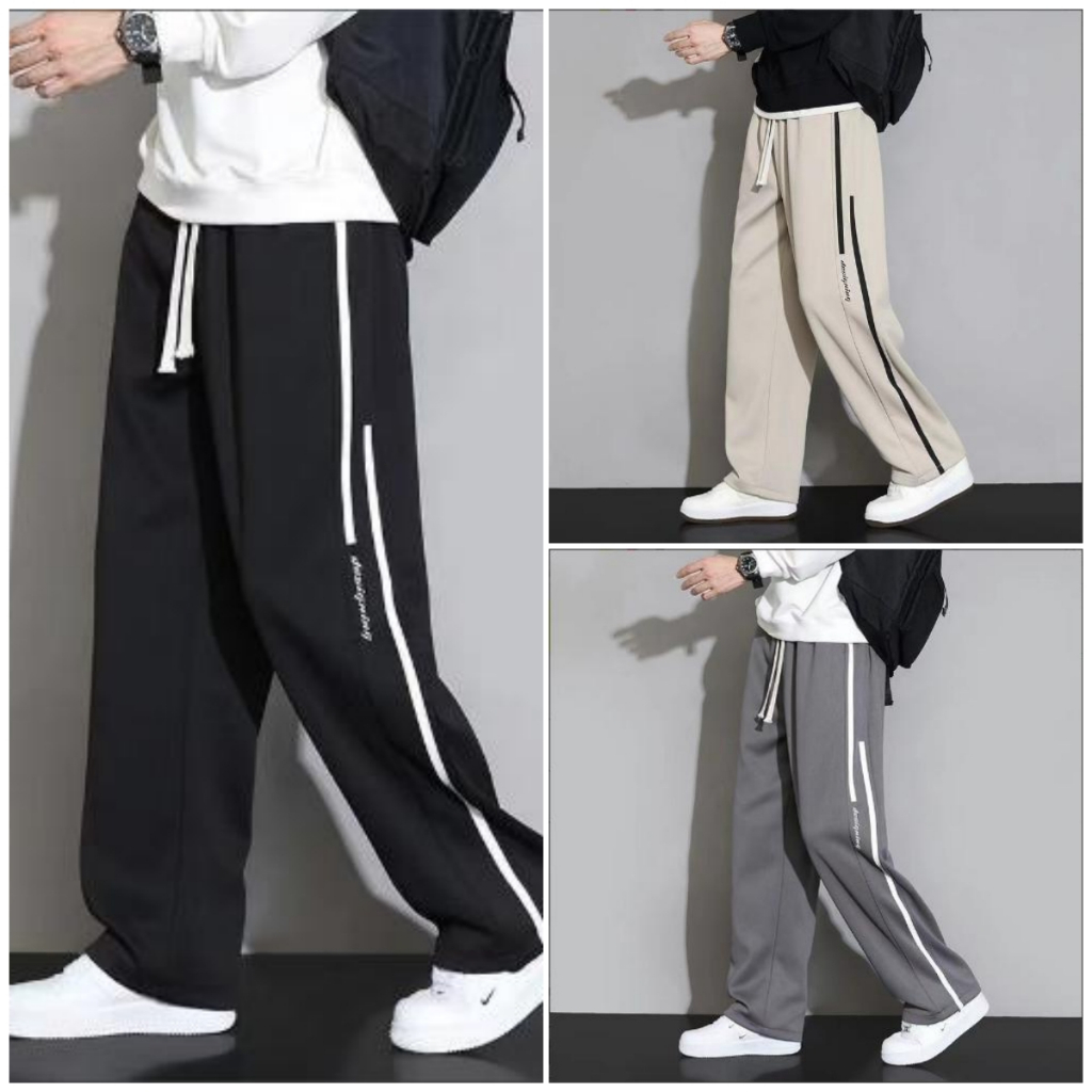 ⚡️Proman⚡️ [ 3 สี COD ] กางเกงขายาวผู้ชาย แบรนด์ยอดนิยม ฤดูร้อน รุ่นใหม่ ลายทาง ความรู้สึกห้อย ทรงตรง ลำลอง แบบหลวม ขากว้าง กีฬา กางเกง