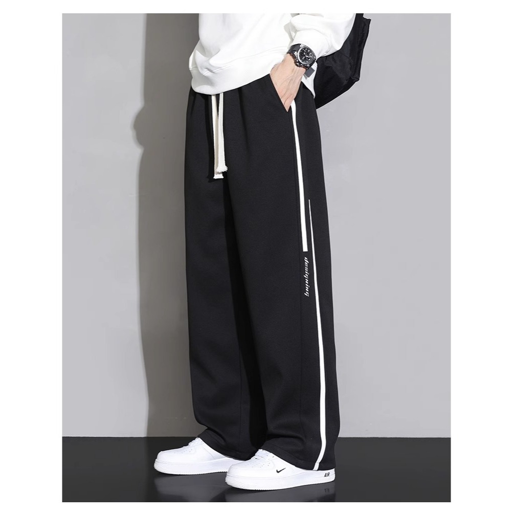 [สวมใส่ 40-95 กก.] ม-4เอ็กแอล ฤดูใบไม้ผลิฤดูใบไม้ร่วงแนวโน้มขนาดบวกหลวมยืดกางเกงขายาวผู้ชายสบายๆกีฬาระบายอากาศกางเกงตรง