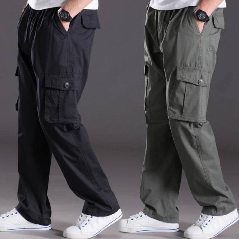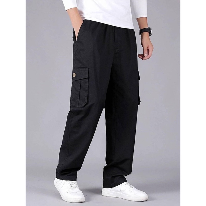 [Spot] กางเกงลำลองผู้ชาย M-5XL กางเกงหลวมขนาดใหญ่เวอร์ชั่นเกาหลีผ้าหนาเอวยางยืดกระเป๋าซิปคู่