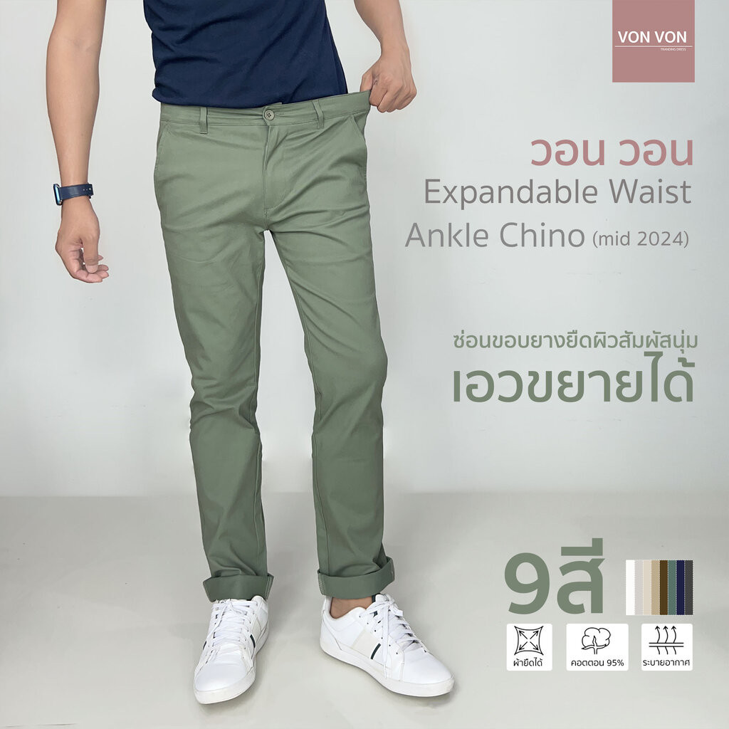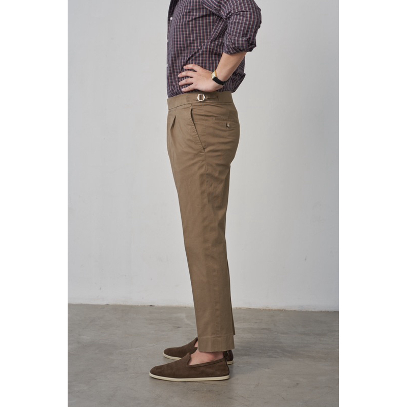 [Code20%ทักแชท] The Portland Chino Trouser สีน้ำตาล Taupe | ผ้า Cotton Stretch | ทรง Regular Fit 1 จีบ | ตัวปรับเอว