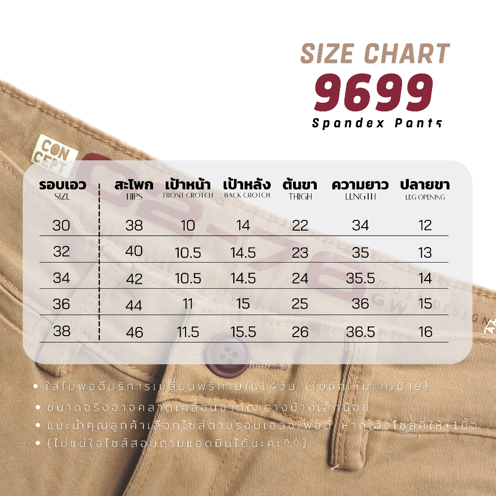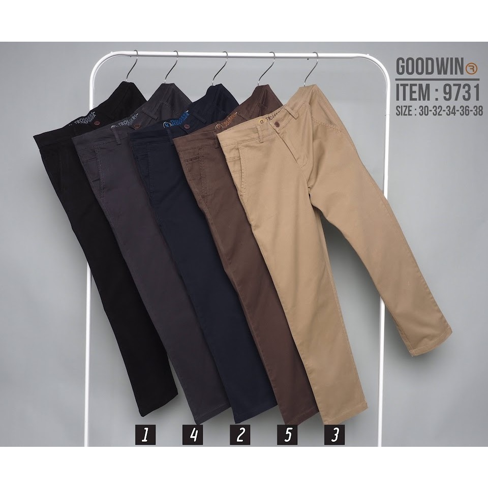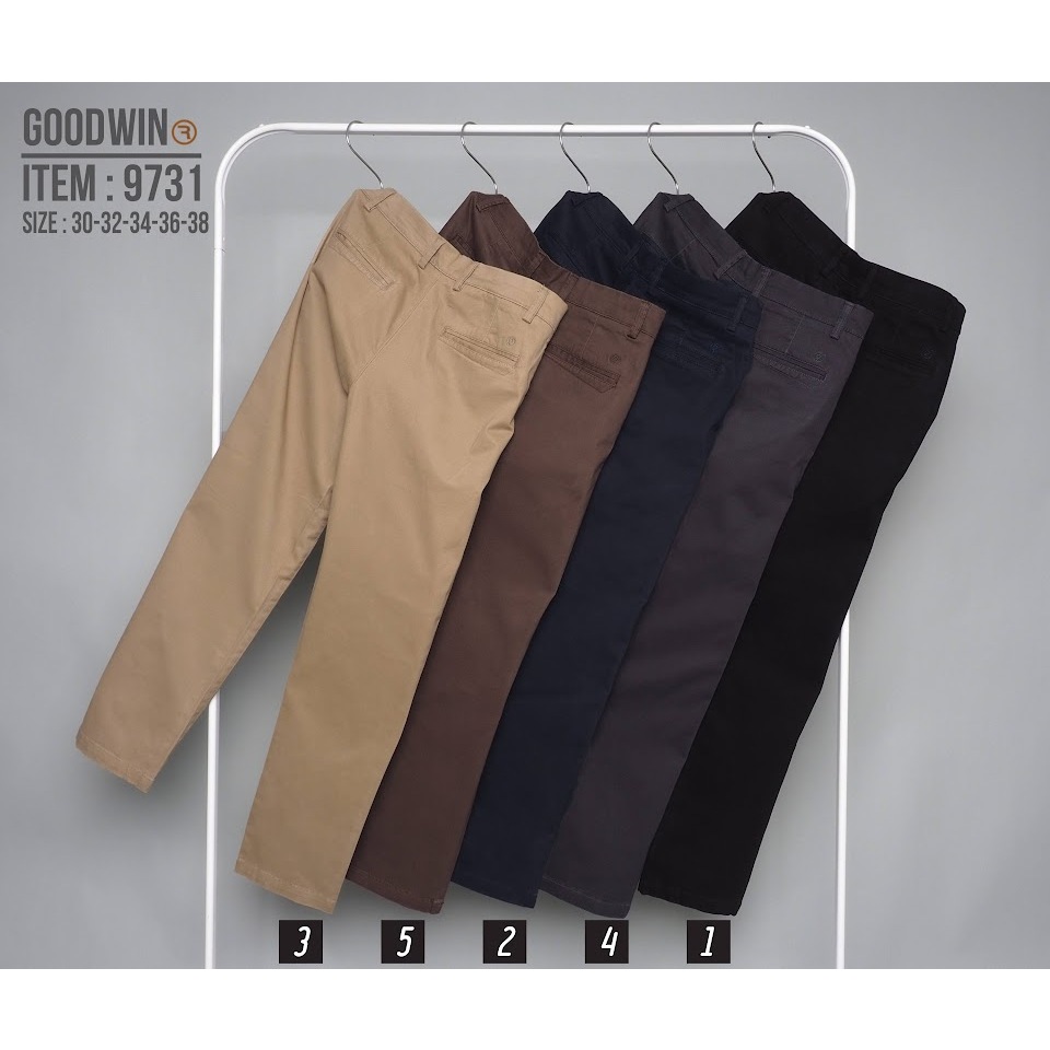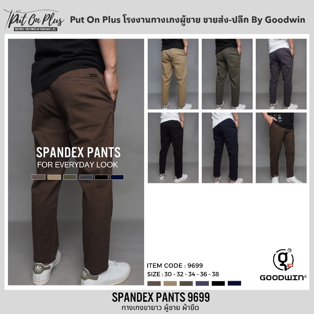 ⚡GW⚡9699 กางเกงขายาว ผู้ชาย ผ้ายืด สีพื้น Slim fit ยาว 34-36.5 นิ้ว ไซส์ 30-38 Goodwin Brand