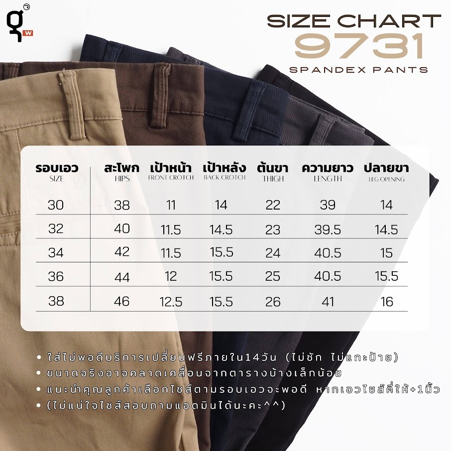 ⚡GW⚡9731 กางเกงขายาว ผู้ชาย ผ้ายืด สีพื้น Slim fit ยาว 39-41 นิ้ว ไซส์ 30-38