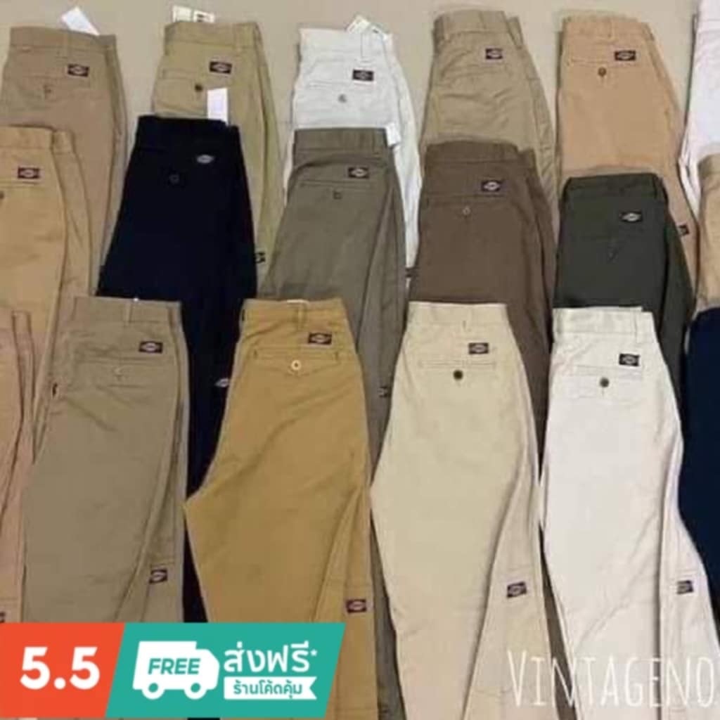 ♥(มีไซส์ 40-55) กางเกงดิกกี้ นักศึกษาขากระบอกตรงกึ่งใหญ่ 4กระเป๋า เป๋าซิปทองเหลือง มี6สี ผ้าChino