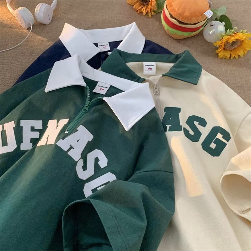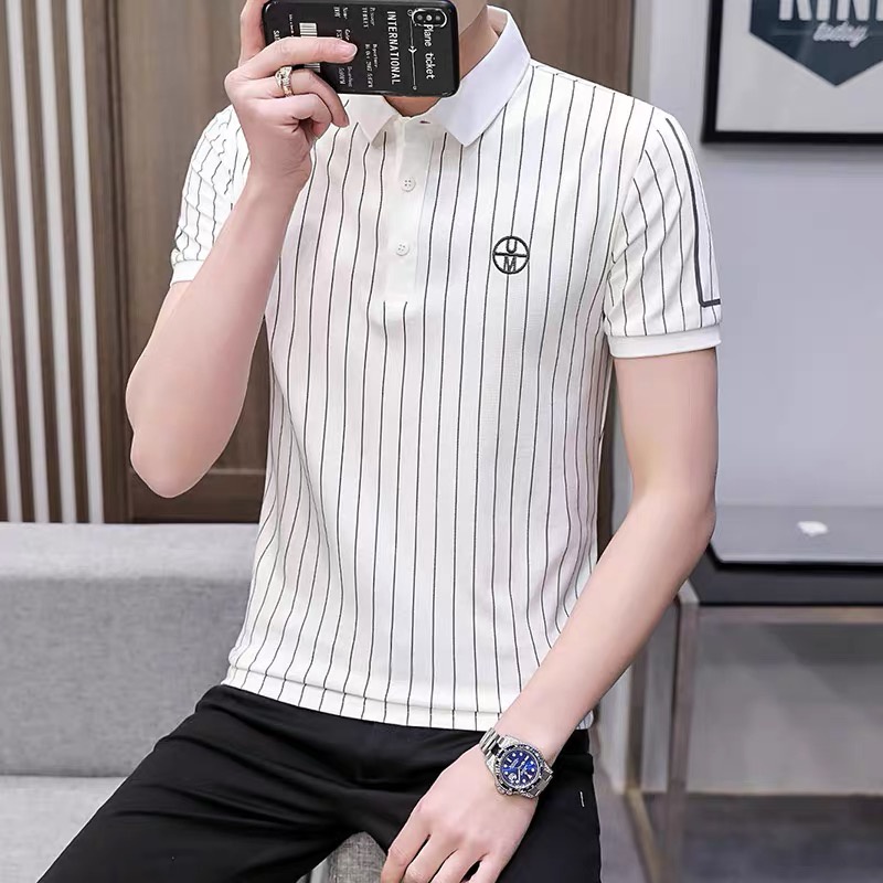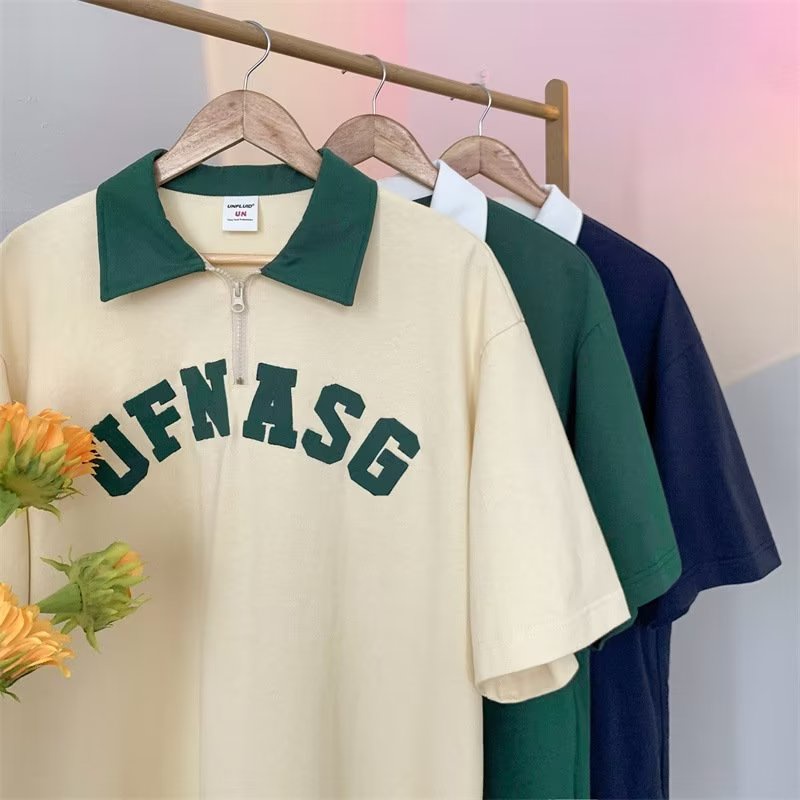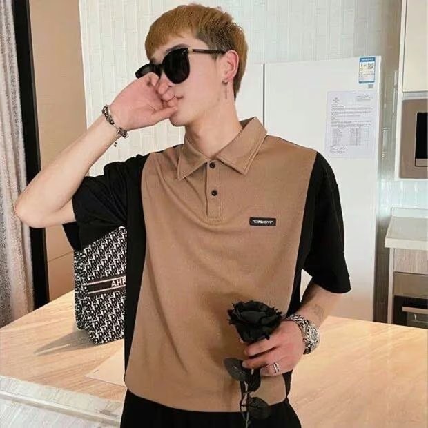 เสื้อโปโลแขนสั้นลําลอง เข้ากับทุกการแต่งกาย สไตล์ฮ่องกง สตรีท แฟชั่นสําหรับผู้ชาย