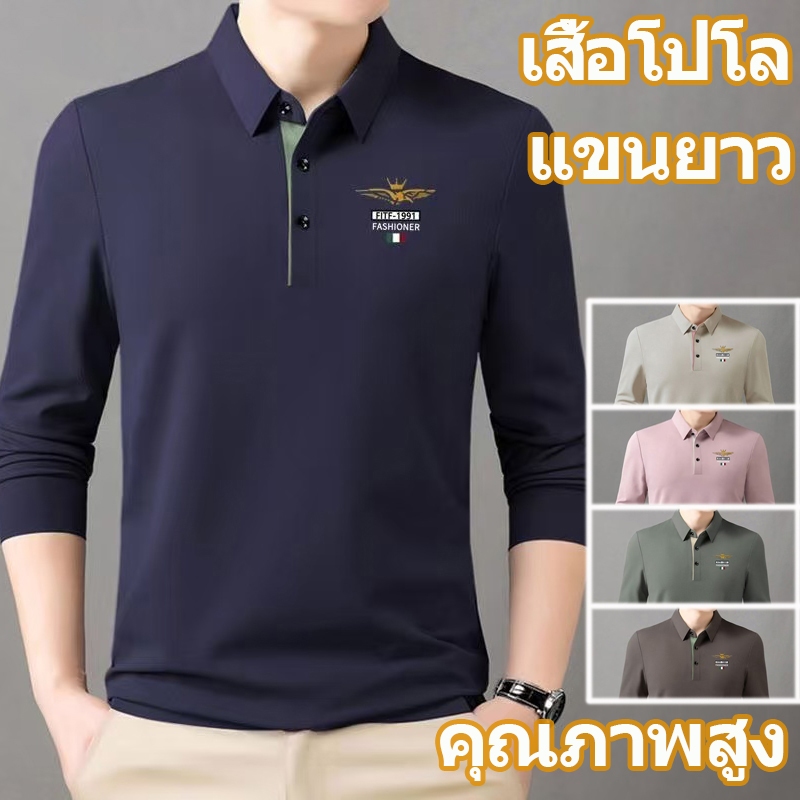 แขนยาวเสื้อโปโลผู้ชาย เสื้อคอปก เสื้อ polo Oversize มีให้เลือก 5 สี เหมาะสำหรับทั้งงานและการพักผ่อน