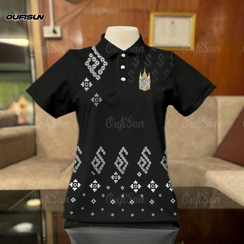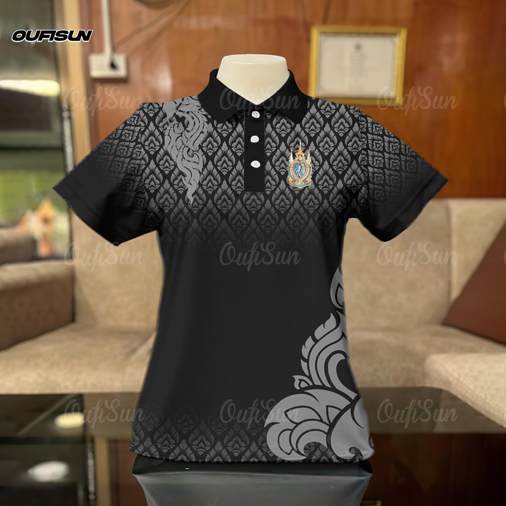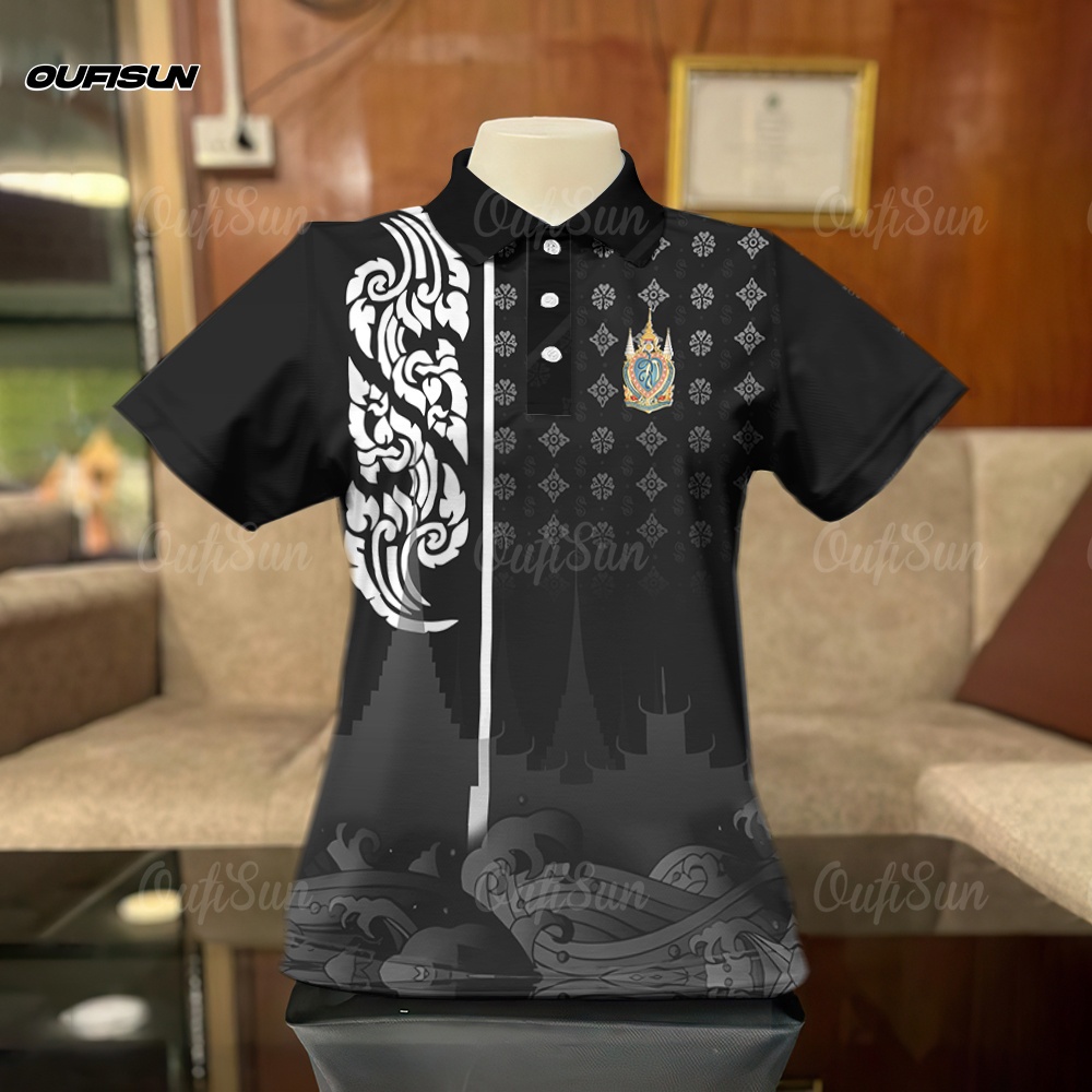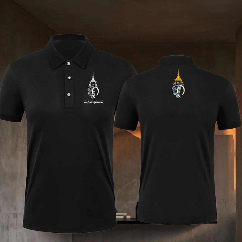 โปโล เสื้อโปโลสีดำ เสื้อแขนสั้นลายน้อมส่งเสด็จสู่สวรรคาลัย การไว้ทุกข์ ลายริบบิ้น Black เสื้อดำ Polo กีฬาโปโล