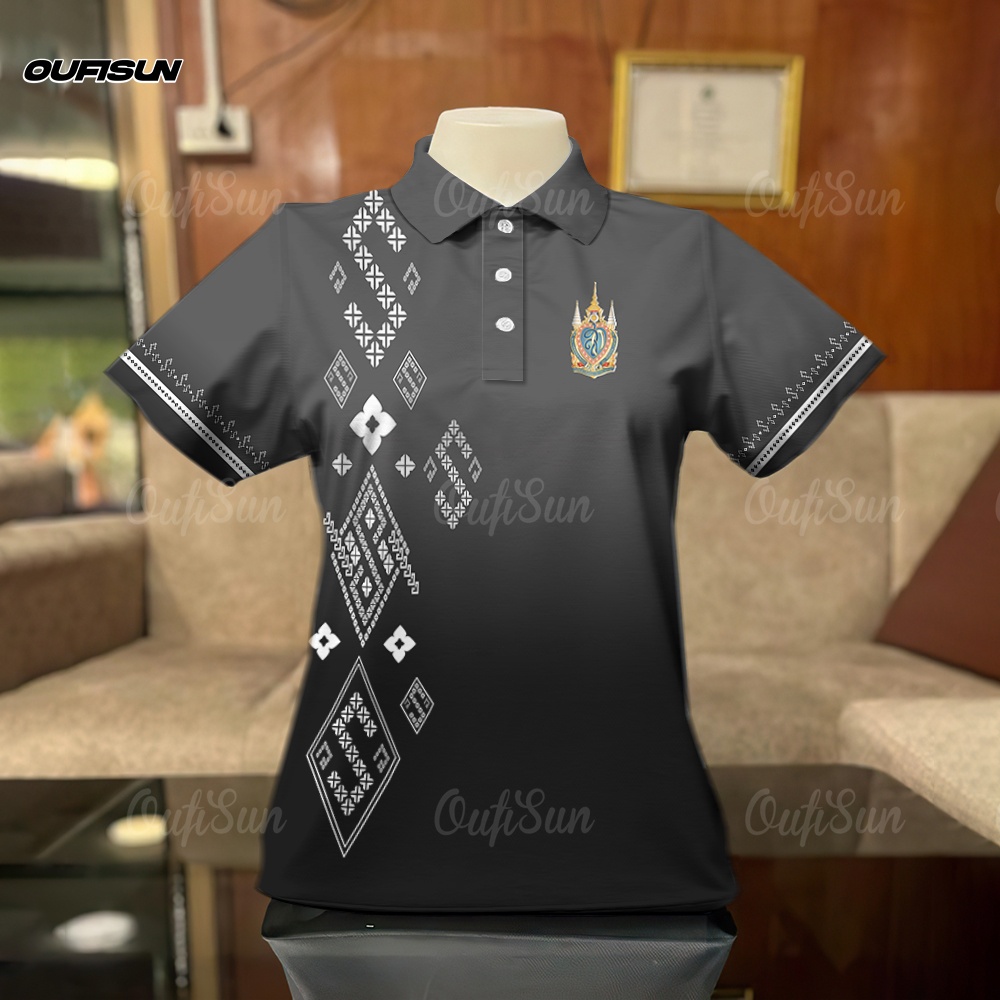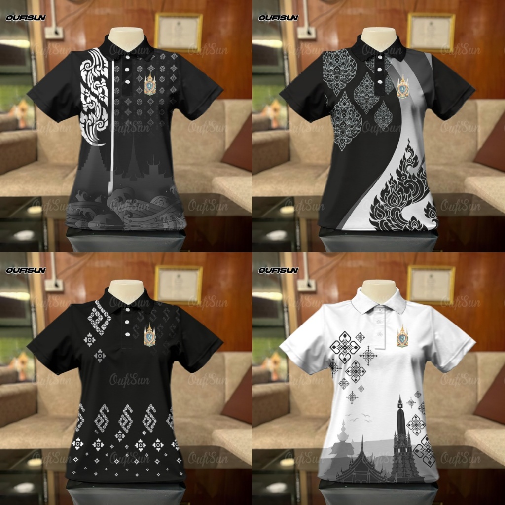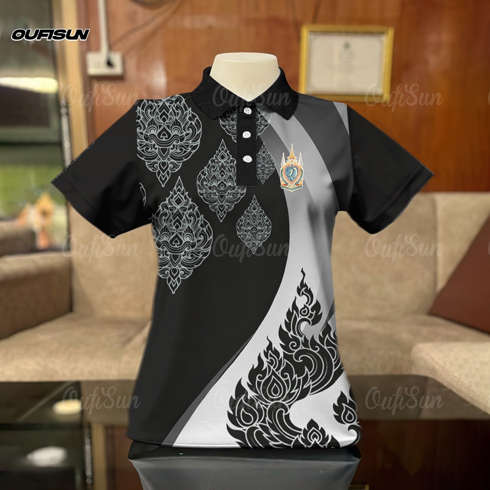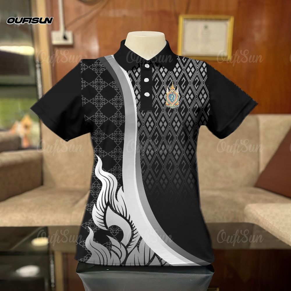 โปโล เสื้อโปโลสีดำ เสื้อแขนสั้นลายน้อมส่งเสด็จสู่สวรรคาลัย การไว้ทุกข์ ลายริบบิ้น Black เสื้อดำ Polo กีฬาโปโล