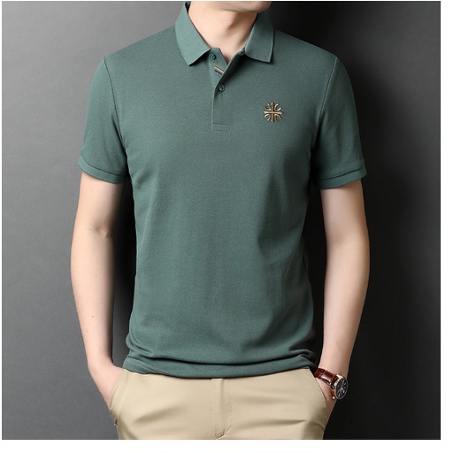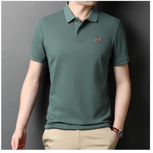 เสื้อโปโลแขนสั้นลําลอง เนื้อผ้าฝ้าย ปักลาย ทรงหลวม ระบายอากาศ สไตล์นักธุรกิจ สําหรับผู้ชาย มี 5 สี