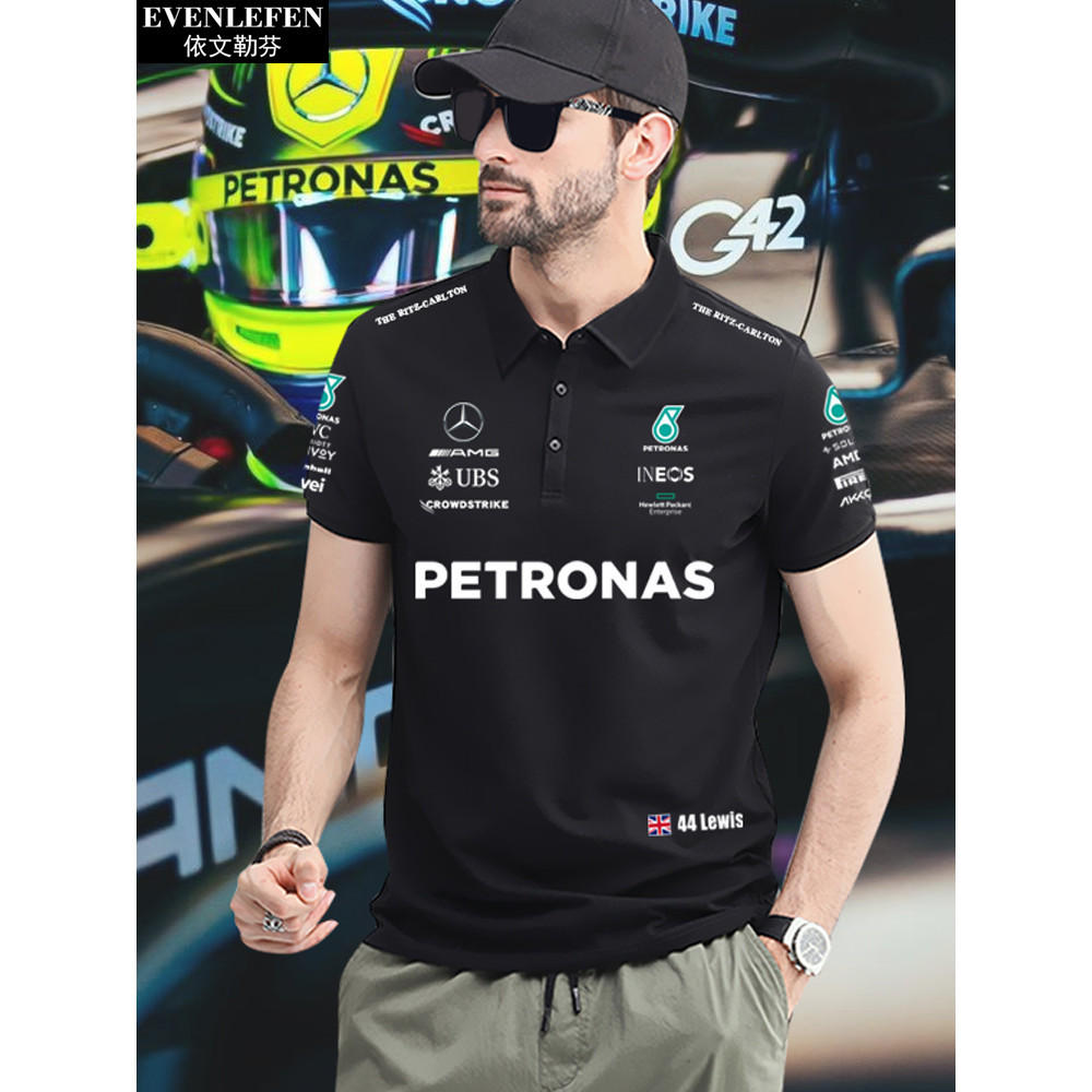 เสื้อโปโลแฟชั่น Mercedes Benz Hamilton George F1 Racing เสื้อโปโลผู้ชาย เสื้อยืดคอปกแขนสั้นผู้หญิง