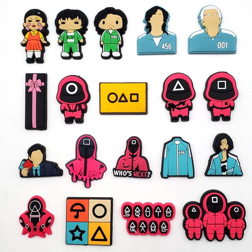 ?หนึ่งชุด/19? ชิ้น อุปกรณ์เสริมรองเท้าแตะ CROCS Pvc Squid game ลายการ์ตูน 1 ชิ้นสําหรับตกแต่งรองเท้า Accessories