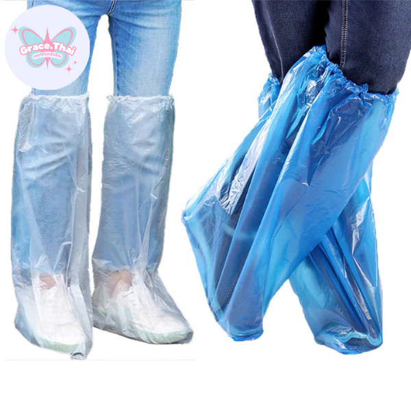 ?Grace Thai? ถุงคลุมรองเท้า รุ่นยาว แบบหนา/แบบบาง แพ็ค 1 คู่ ถุงคลุมรองเท้า พลาสติกใช้แล้วทิ้ง พร้อมส่ง