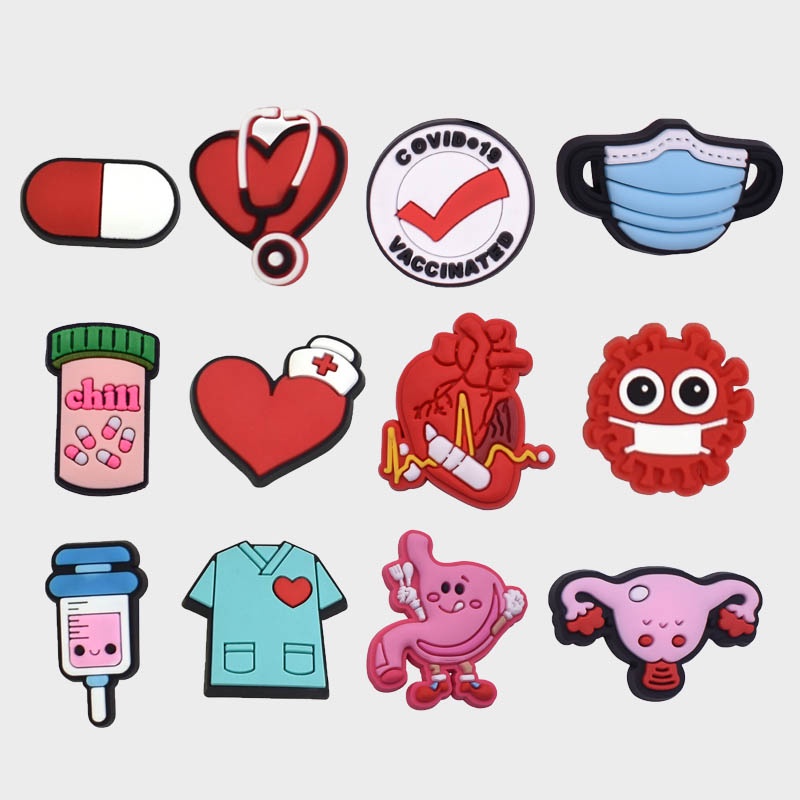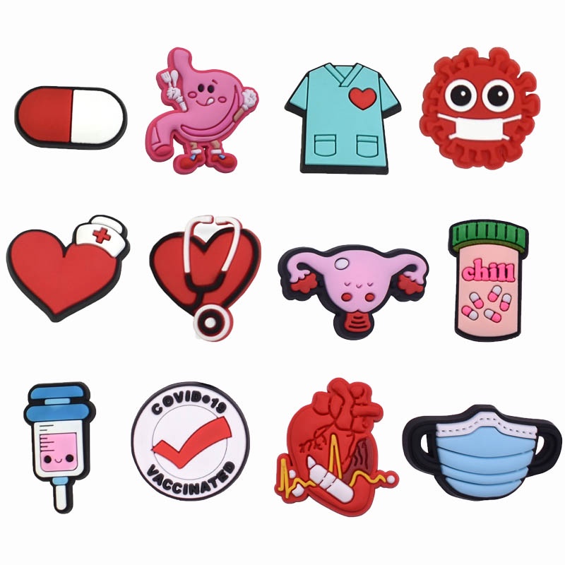 การ์ตูนพยาบาลทางการแพทย์ jibitz Charm ยารถพยาบาล Jibits ออกแบบหูฟังรองเท้า Charms ผ้าพันคอ Dentist ออกแบบ Jibbits Pin สําหรับชายรองเท้าตกแต่ง