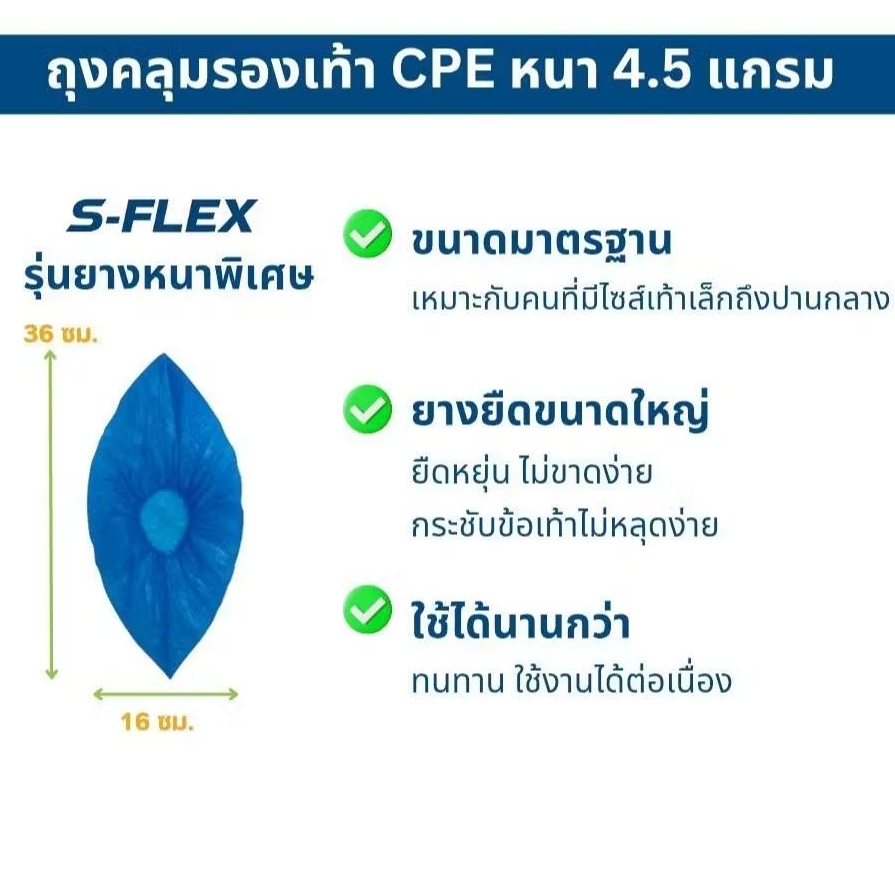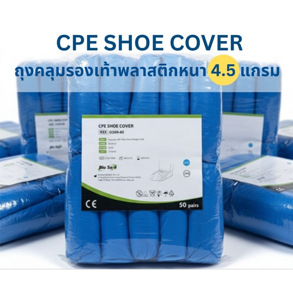 SHOE COVER CPE ถุงคลุมรองเท้าพลาสติกหนาพิเศษ 4.5 แกรม แบบใช้แล้วทิ้ง 50 คู่ กันน้ำ ใส่ในโรงงาน Biosafe