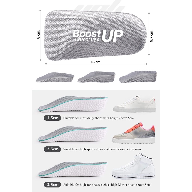 YGB แผ่นเพิ่มความสูง แผ่นเสริมส้นเท้า (1คู่) BoostUp 1-3 cm. เสริมส้น รองเท้าเพิ่มความสูง