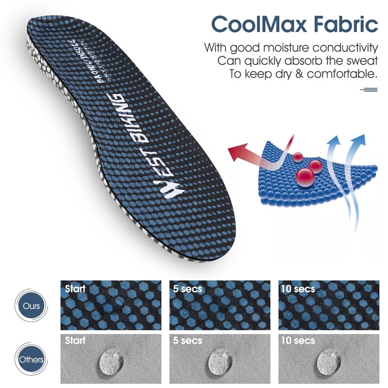 WEST BIKING พื้นรองเท้าเมมโมรีโฟมระบายอากาศสำหรับเล่นกีฬา, พื้นรองเท้าสำหรับเล่นกีฬาปั่นจักรยาน, พื้นรองเท้าวิ่งแบบยืดหยุ่นระบายอากาศป้องกันกลิ่น