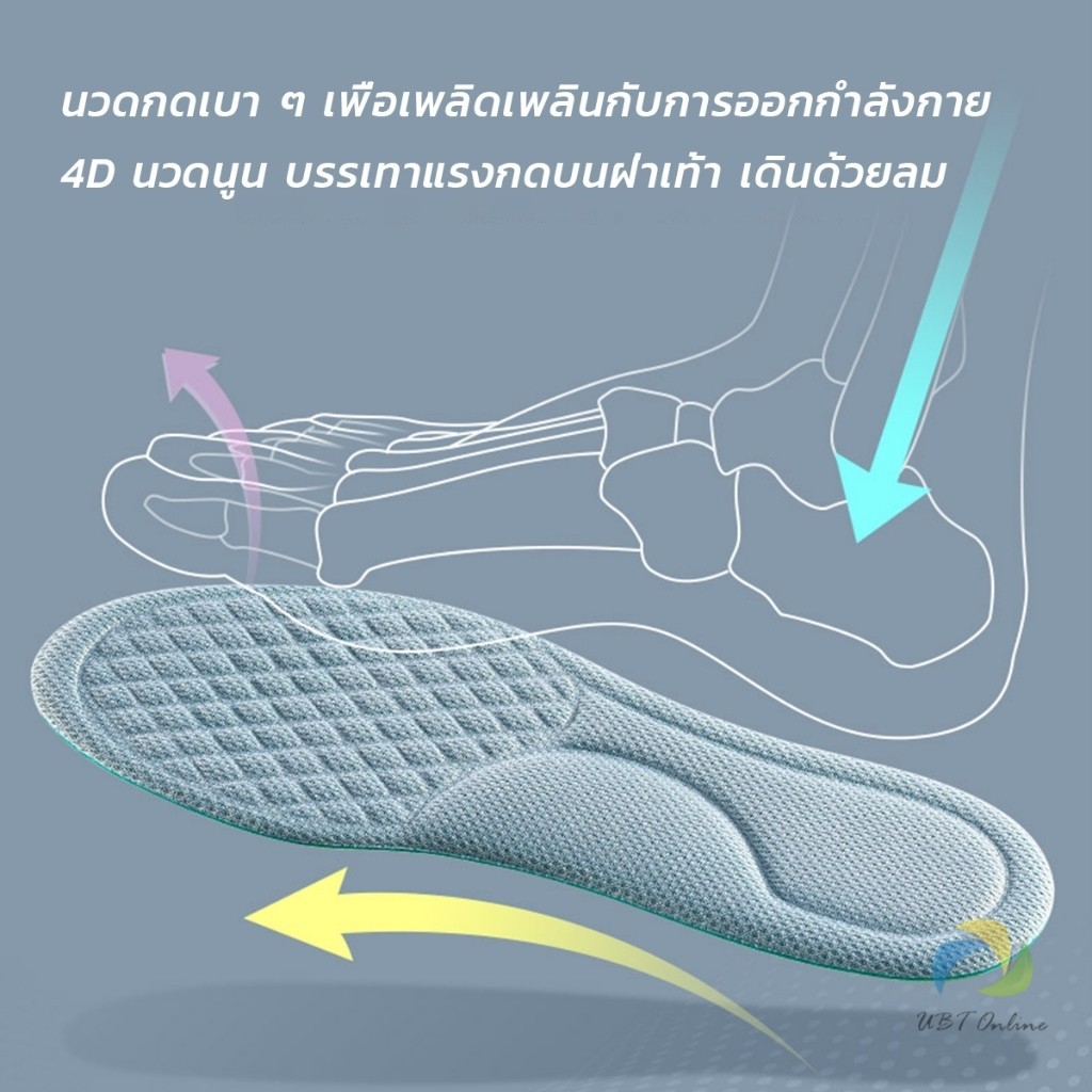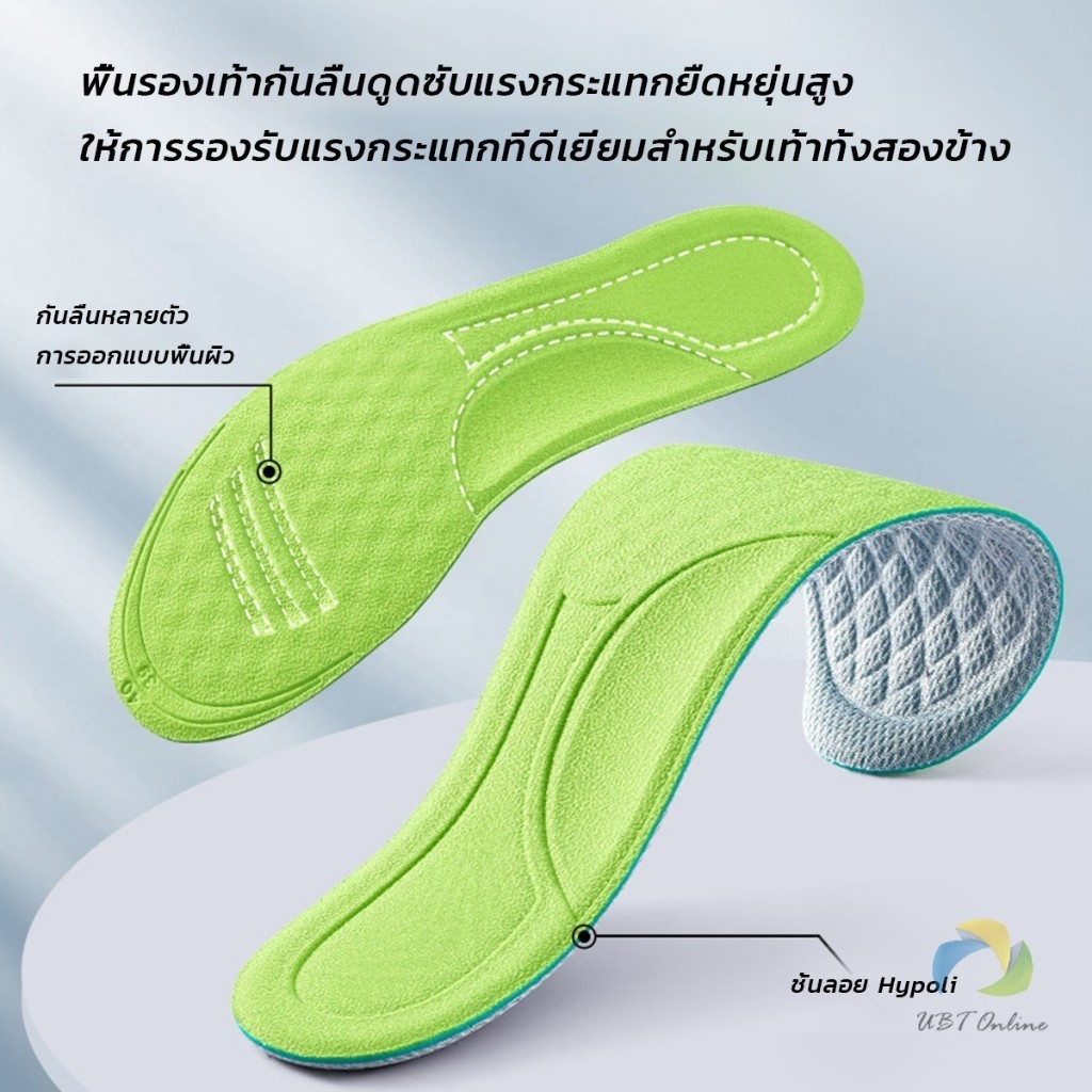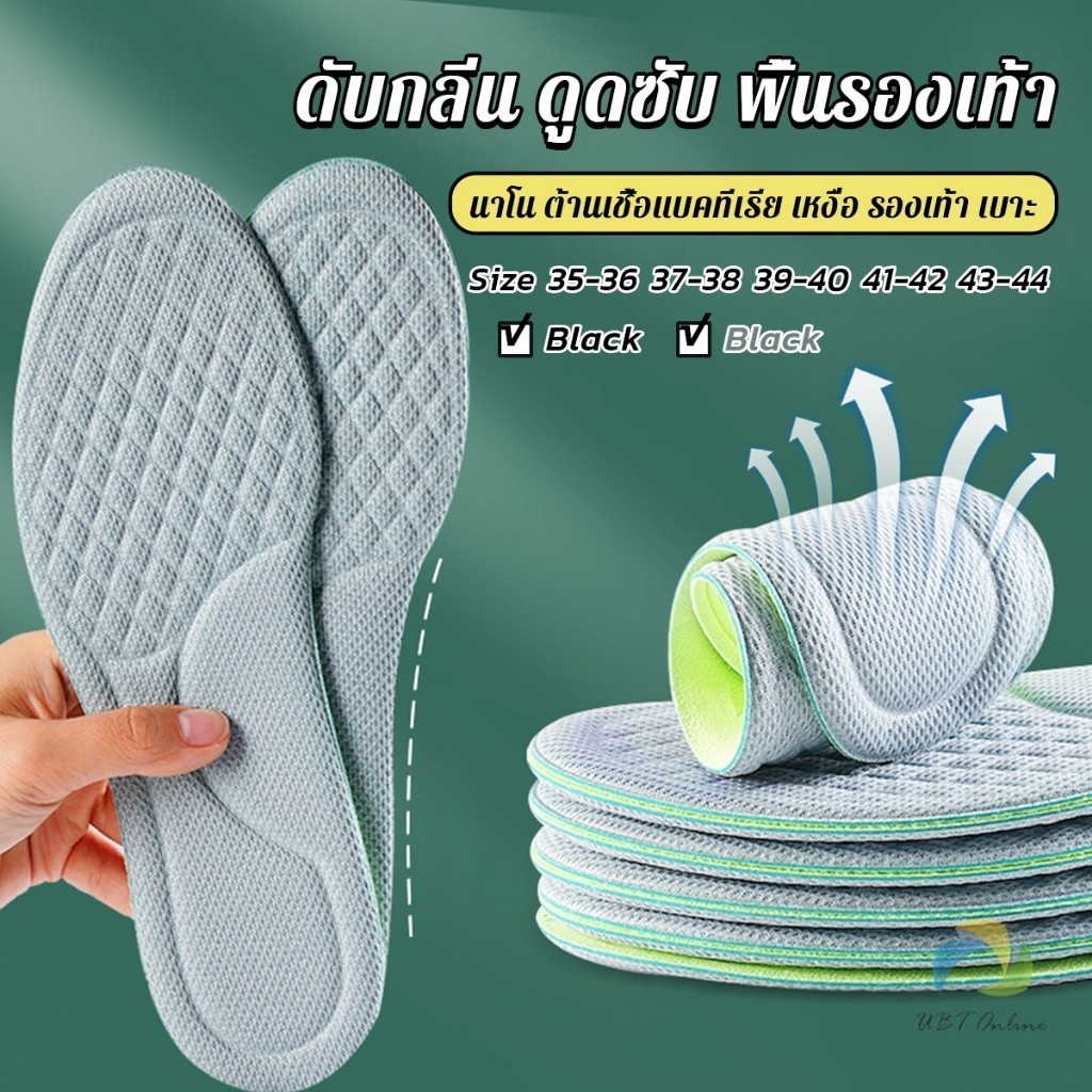 UBT พื้นรองเท้า ดับกลิ่น ดูดซับ นาโน ต้านเชื้อแบคทีเรีย เหงื่อ รองเท้า เบาะ พอดีกับฝ่าเท้า นุ่มสบาย insoles