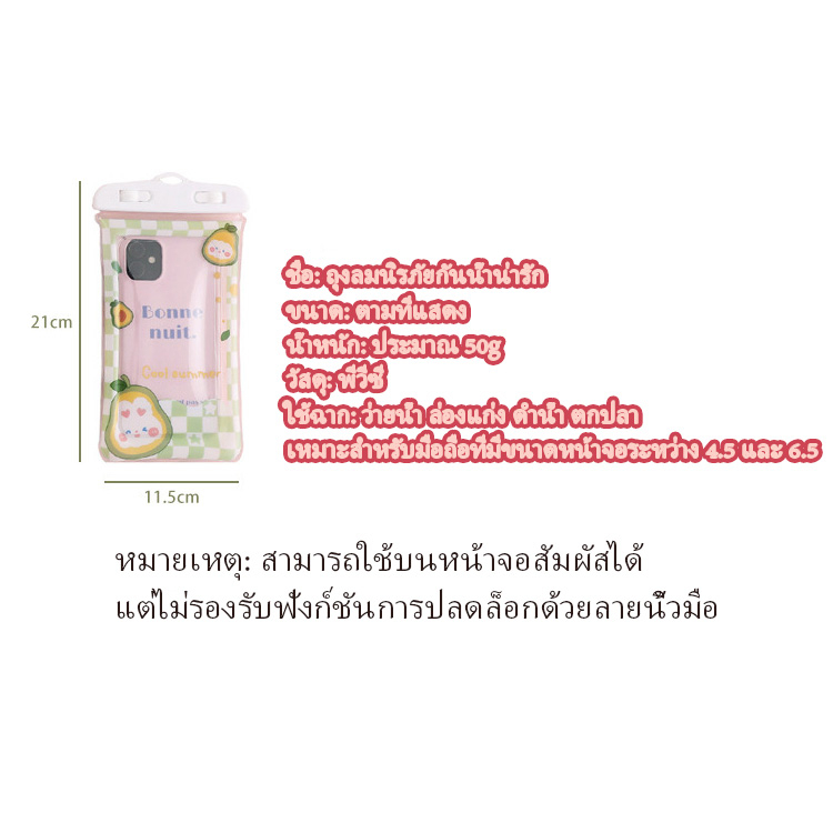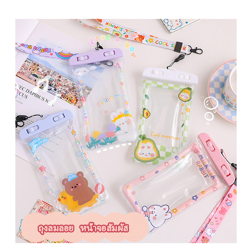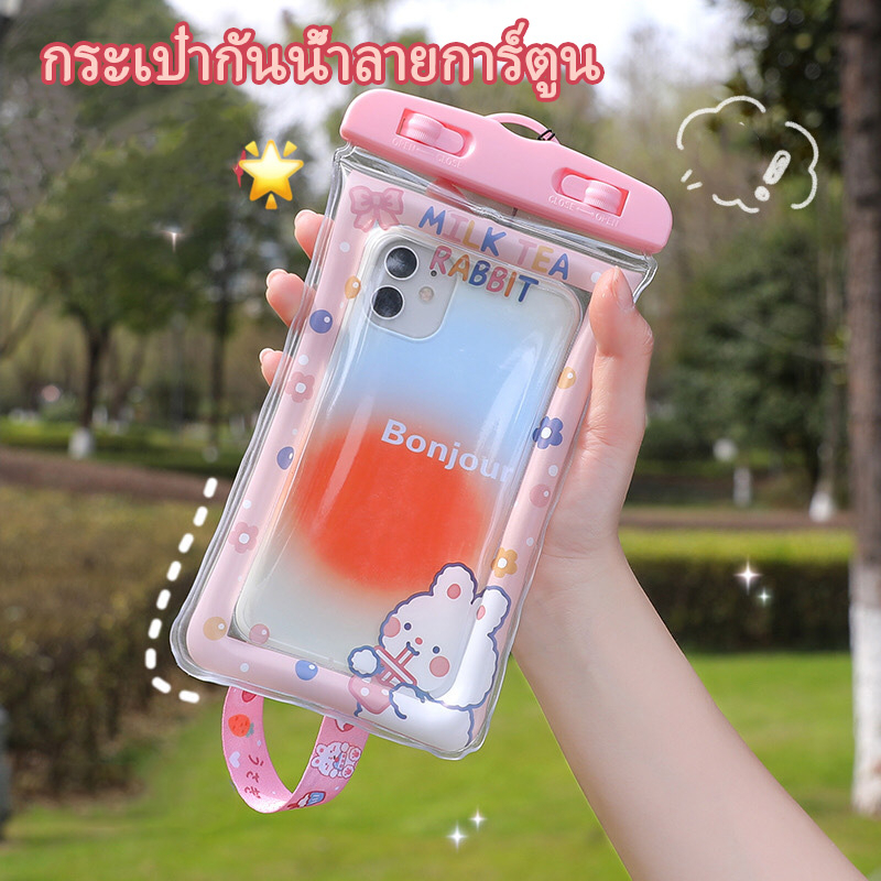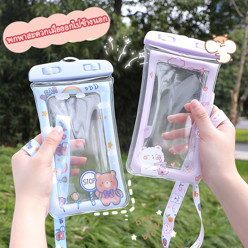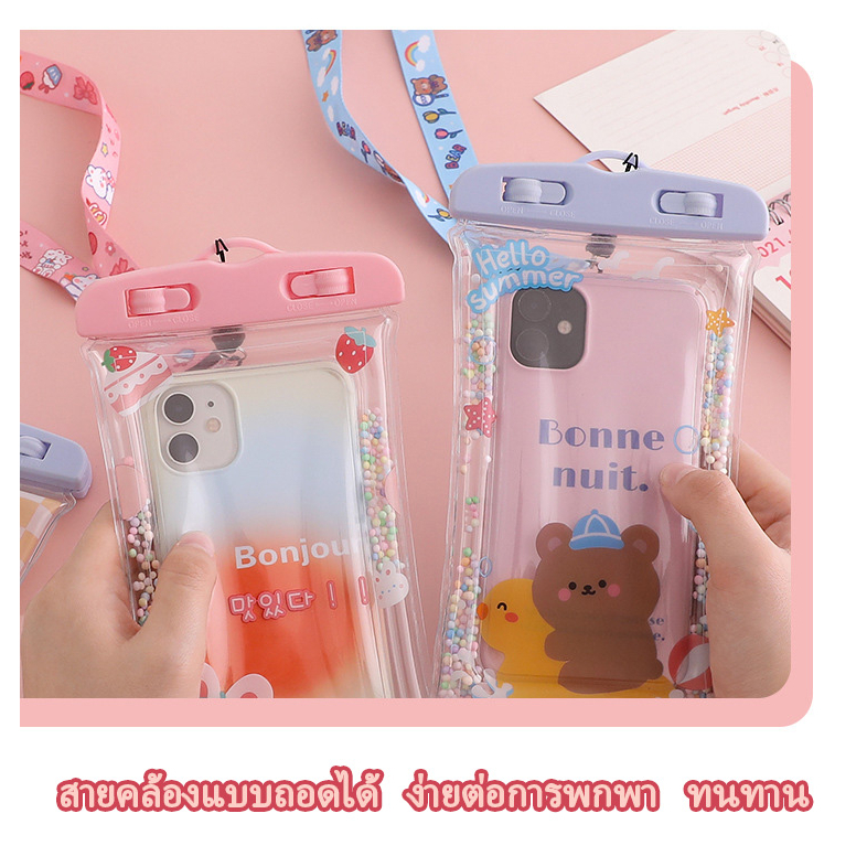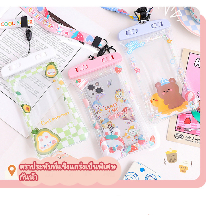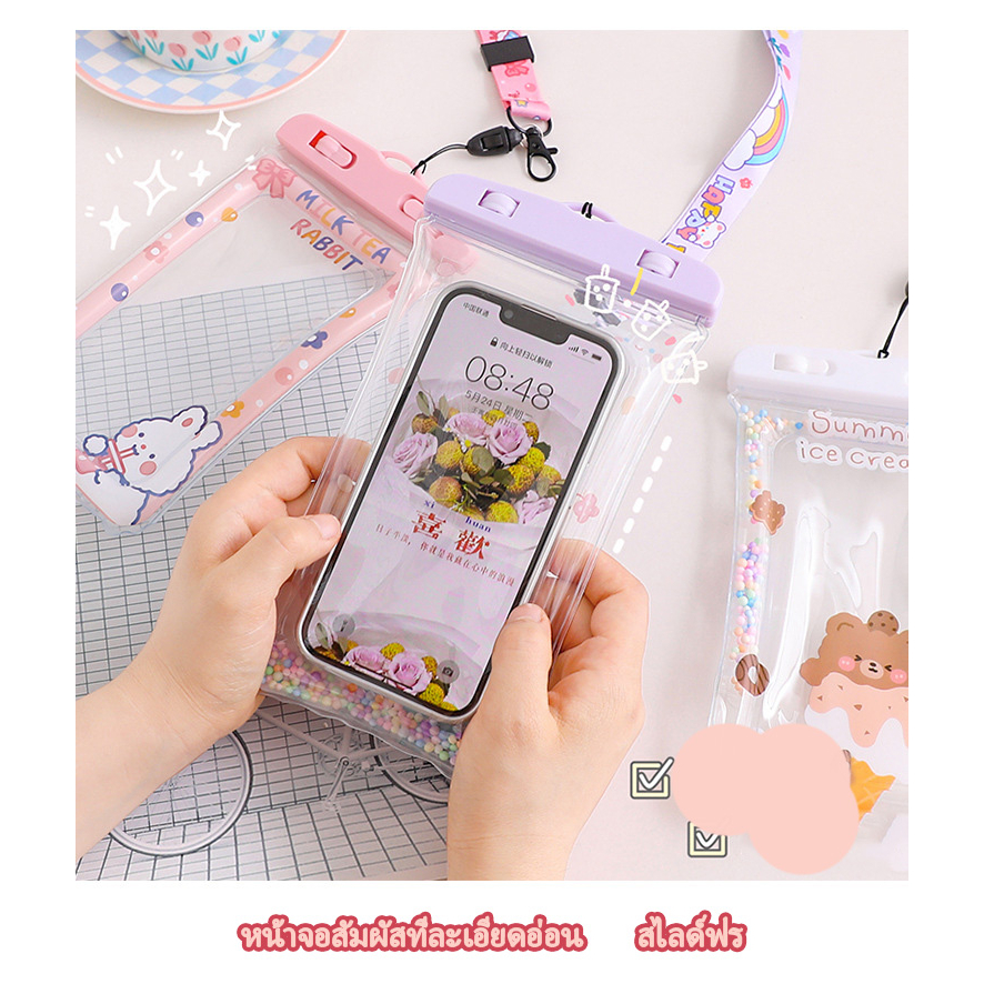 รุ่นใหม่แบบหนา ซองใส่โทรศัพท์กันน้ำ ซองมือถือกันน้ำ น่ารัก แบบเรืองแสง ใช้งานทัชสกรีนซองมือถือ แถมสายห้อยคอ ขนาด 6.8นิ้ว