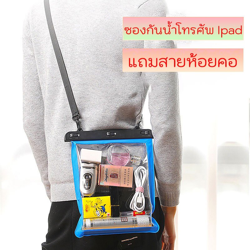 รุ่นใหม่ ซองกันน้ำ ipad กระเป๋ากันน้ำ ขนาดใหญ่ ใช้ได้กับโทรศัพท์มือถือทุกรุ่น ใส่ของได้หลายอย่าง เล่นน้ำสงกรานต์ IPX8
