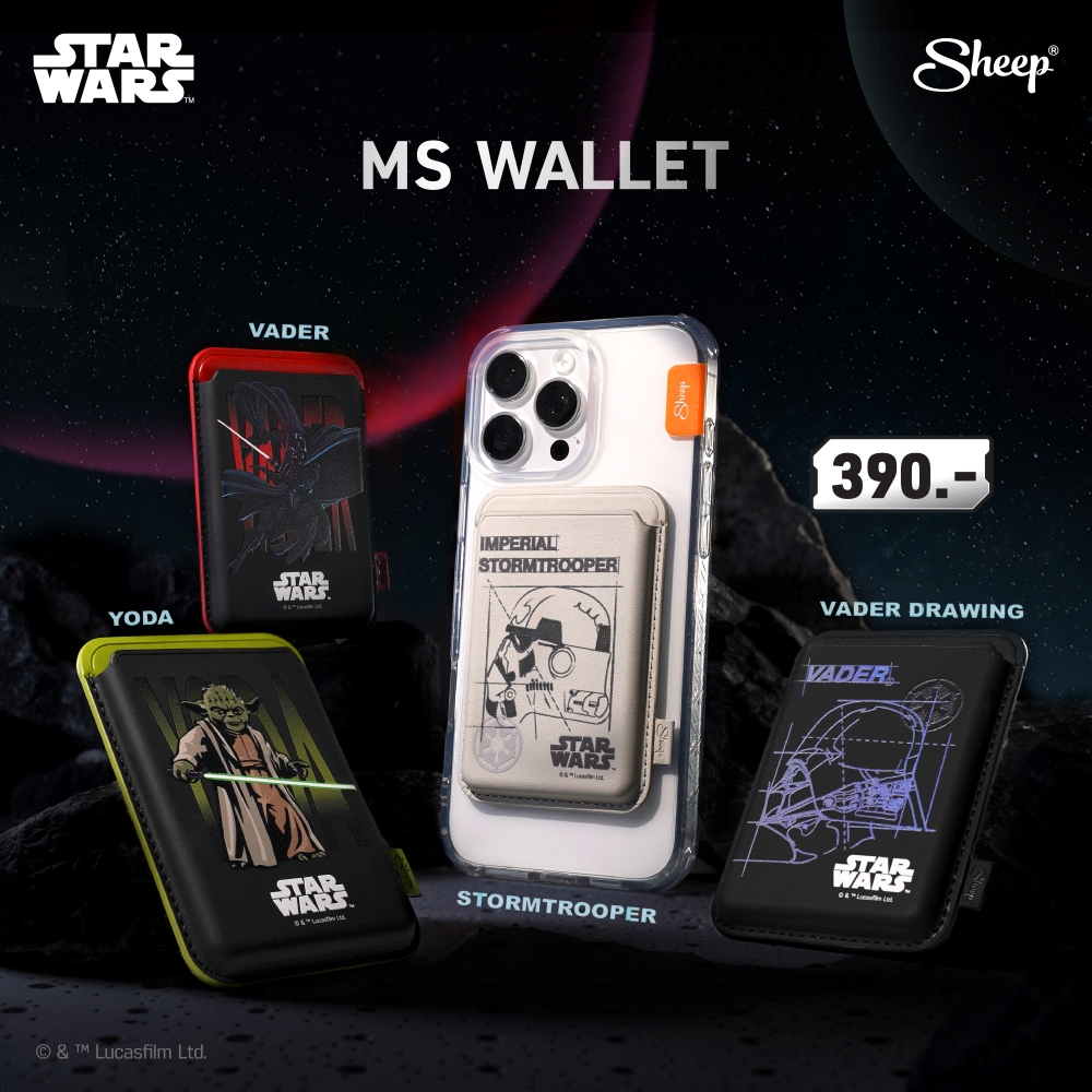 [ MS Wallet Star Wars ] Sheep Star Wars Collection ที่ใส่บัตรแม่เหล็กแปะด้านหลังโทรศัพท์มือถือ ใช้กับเคสMagnet ลิขสิทธิ์