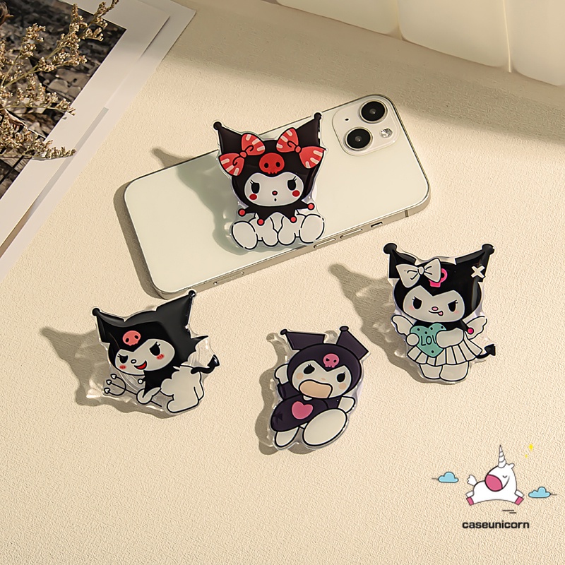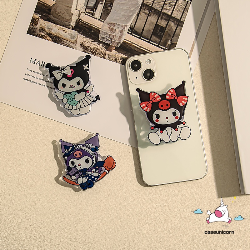สร้างสรรค์ แม่มดน้อย Kuromi น่ารัก หัวใจ ตลก ที่วางโทรศัพท์ การ์ตูน มีความสุข Kuromi สากล พับได้ แหวนยึด รองรับที่วางโทรศัพท์