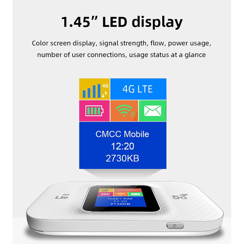 4G/5G Pocket WiFi 300Mbps เราเตอร์ไร้สาย LTE หน้าจอสีเต็มรูปแบบรองรับซิมทุกเครือข่าบรอดแบนด์มือถือ 3000mAh เสียบซิมการ์ด