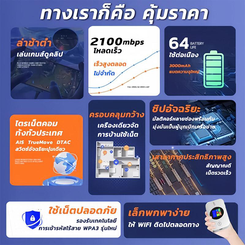 ?ไวไฟพกพา Pocket WiFi 5G ไวไฟพกพาใส่ซิม Pocket WiFi 4G ไวไฟพกพา รองรับทุกซิม โมบายไวไฟ Router รองรับทุกซิม รับประกัน 3ปี