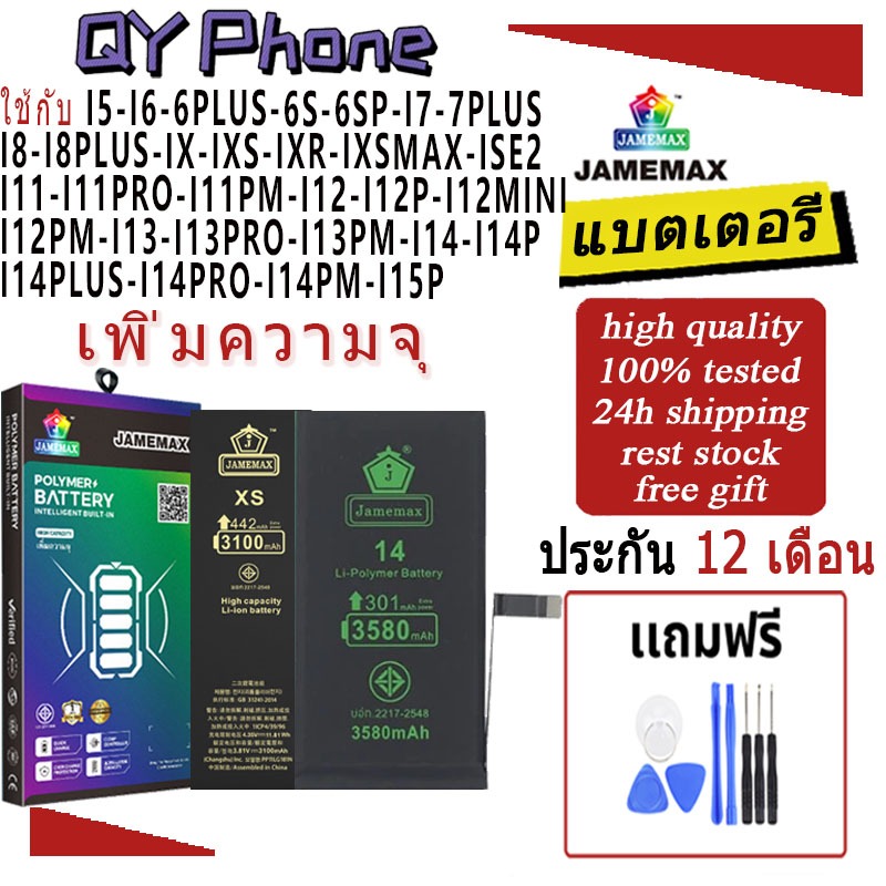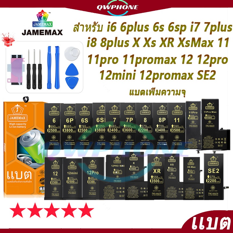แบตโทรศัพท์มือถือ JAMEMAX แบตเตอรี่ ใช้กับ i6 6p 6sp i7 7p i8 8p iX XS XR XS Max i11 11pro 11pm 12 SE2..【แบตเพิ่มความจุ】