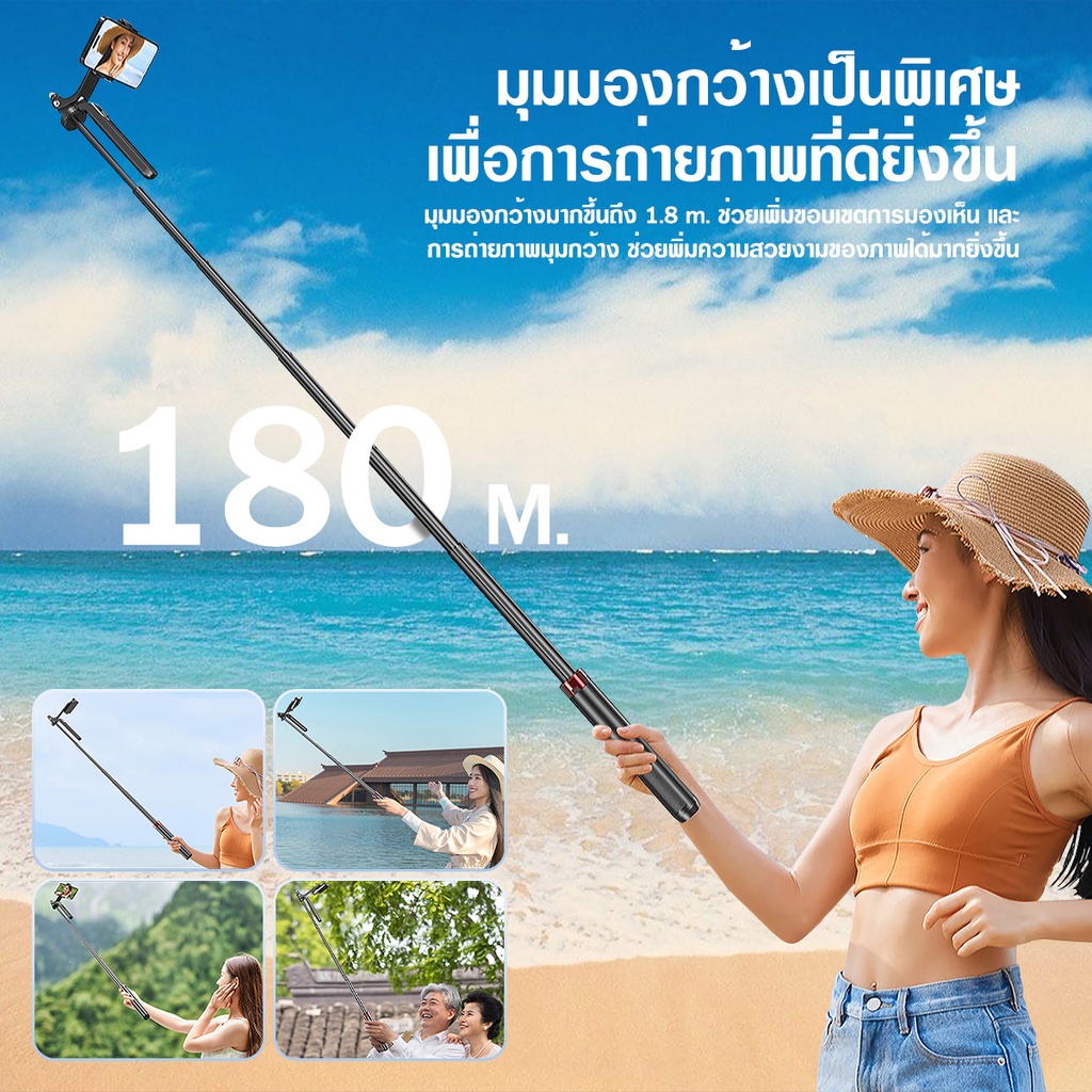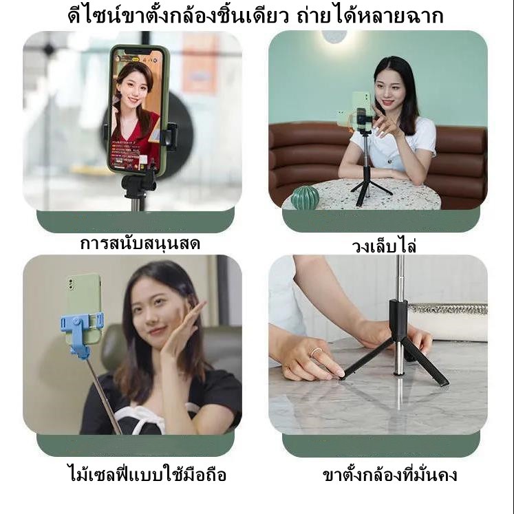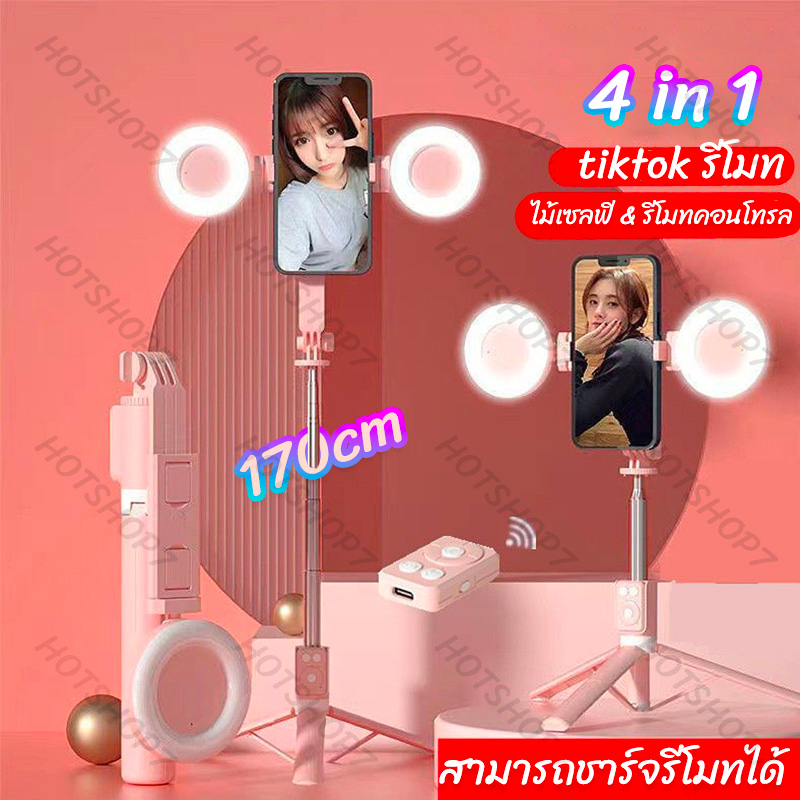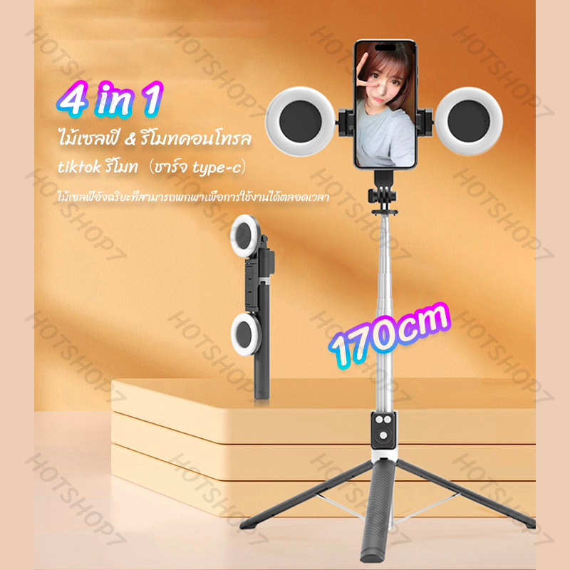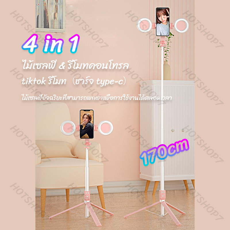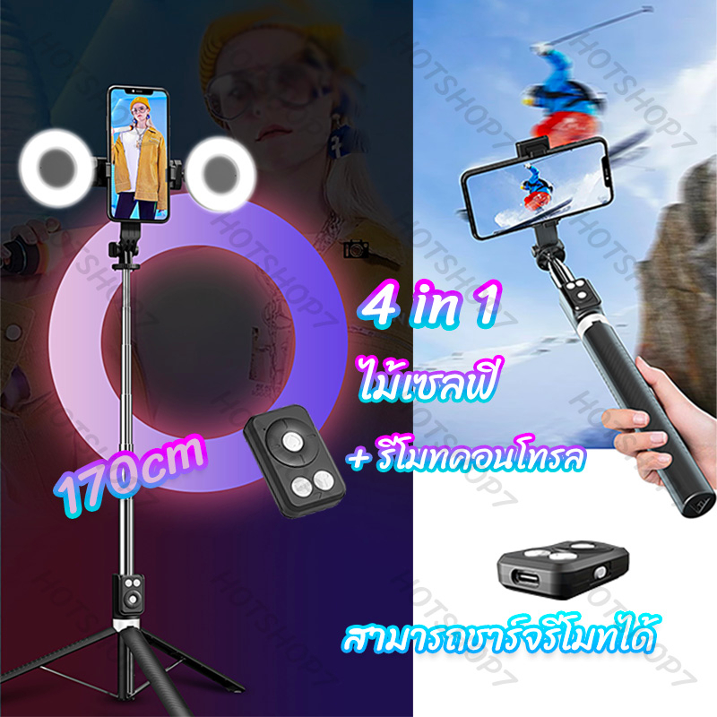 ?ส่งจากไทย?ไม้เซลฟี่อเนกประสงค์ 4-in-1 หมุนได้ 360° พร้อมไฟ LED ขาตั้งกล้องแบบโมโนพอดพร้อมรีโมตคอนโทรลไร้สาย