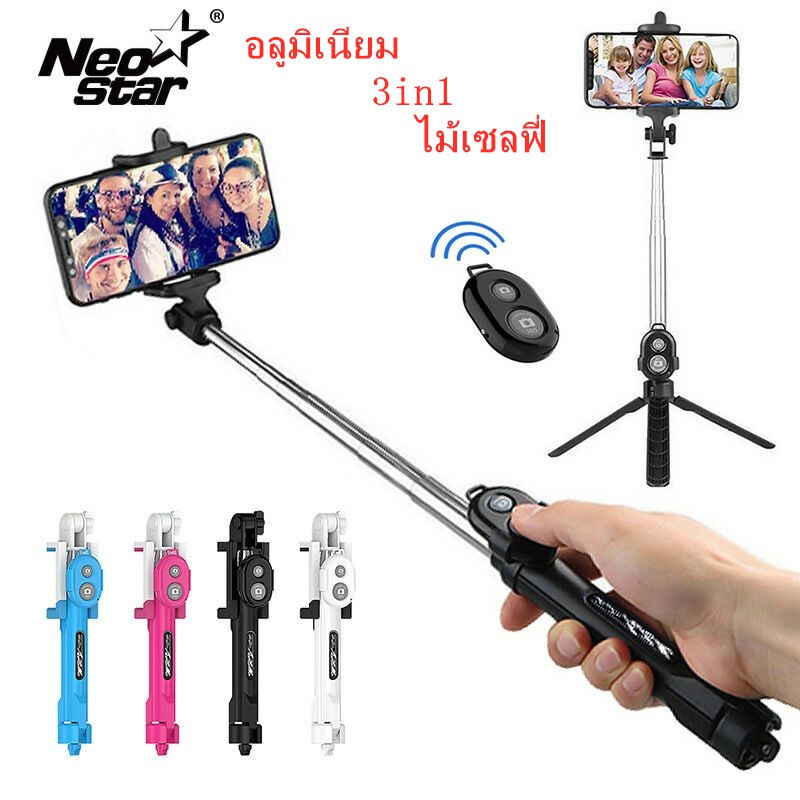 (ของแท้100%) 3IN1 -ไม้เซลฟี่ แบบไร้สาย พร้อมรีโมทบลูทูธ