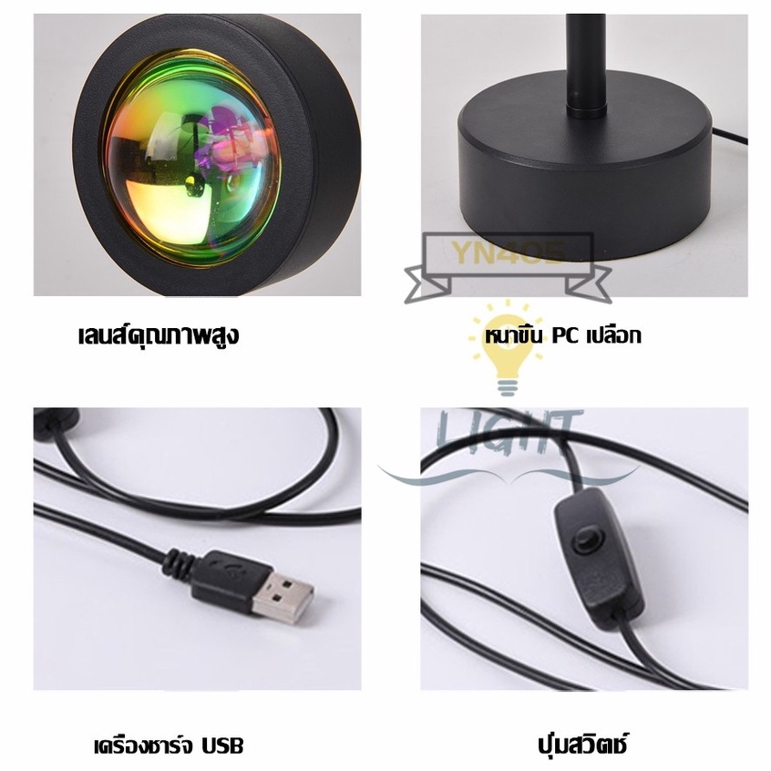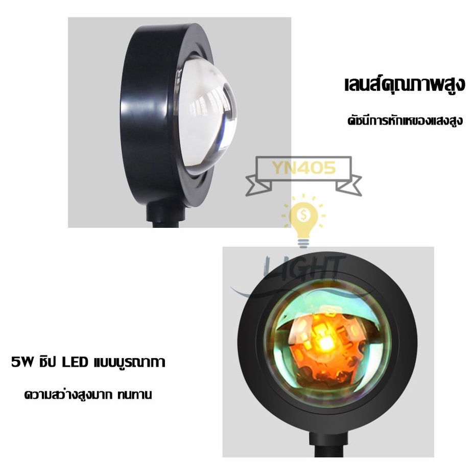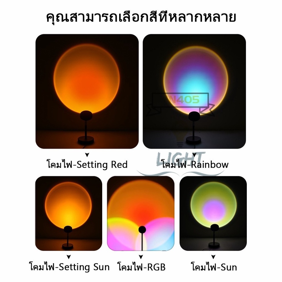 (พร้อมส่ง)โคมไฟโปรเจคเตอร์ RGB LED ไฟโรเซ่ สีรุ้ง พระอาทิตย์ตกไฟแต่งห้องเกาหลี ไฟพระอาทิตย์ตก