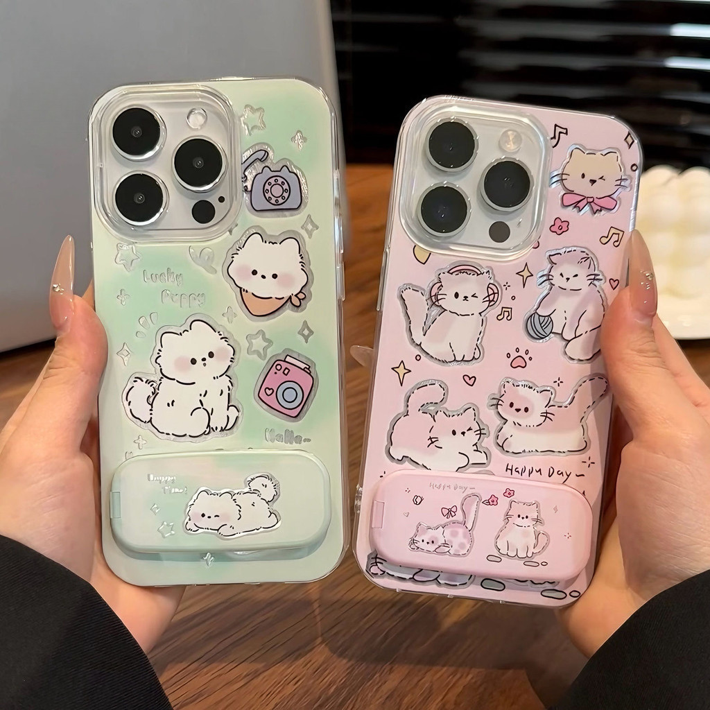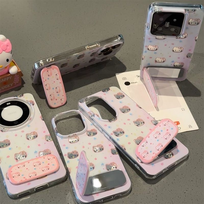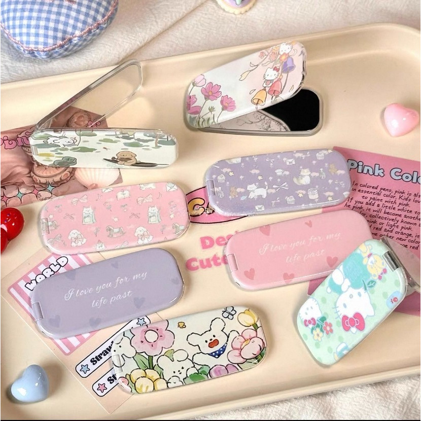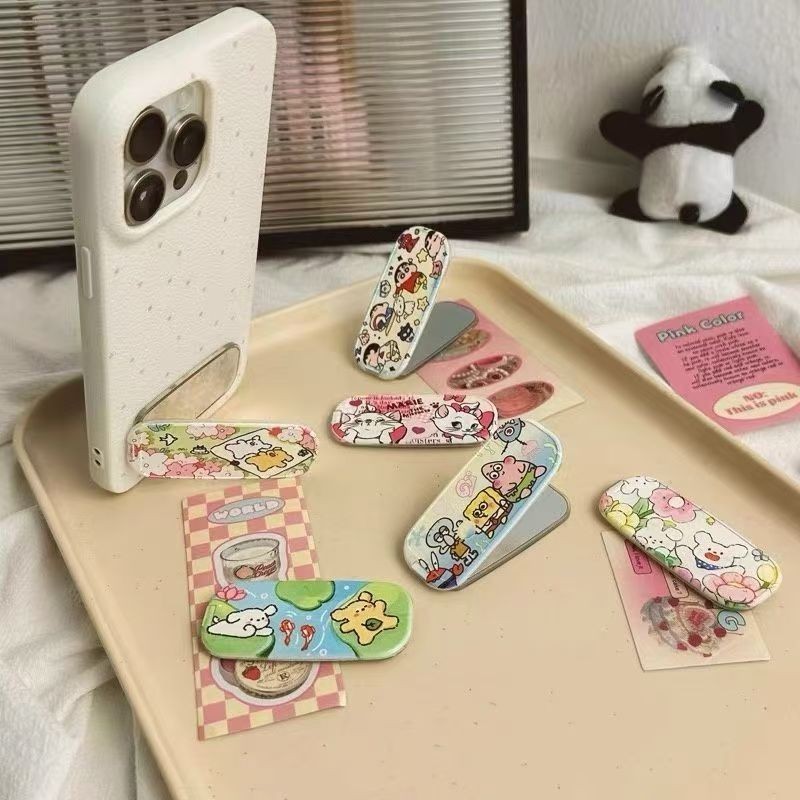 ?Bov?การ์ตูนน่ารักพับได้กระจกโทรศัพท์ยืนยืดพับได้วางเดสก์ทอปเป็นการสนับสนุนสำหรับทุกชนิดของกรณีโทรศัพท์ -HLJM1-98