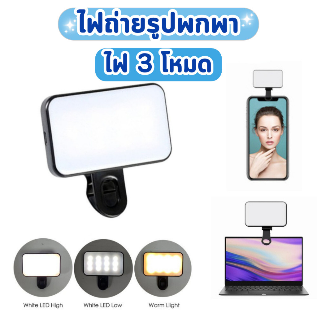 ?ไฟดารา LED? ติดกล้องถ่ายรูป ไลฟ์สด ปรับแสงได้3โหมด แบตเตอร์รี่ชาร์ตไฟ ที่หนีบโทรศัพท์ โคมไฟเซลฟี่ ปรับความสว่างได้ 3 โห