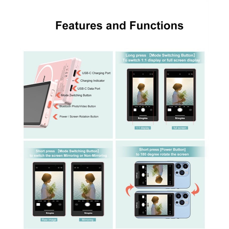 (NEW) KINGMA VL-PH02 MAX จอเซลฟี่มือถือแบบแม่เหล็ก รองรับ4K iPhone Android (ประกันศูนย์ไทย)