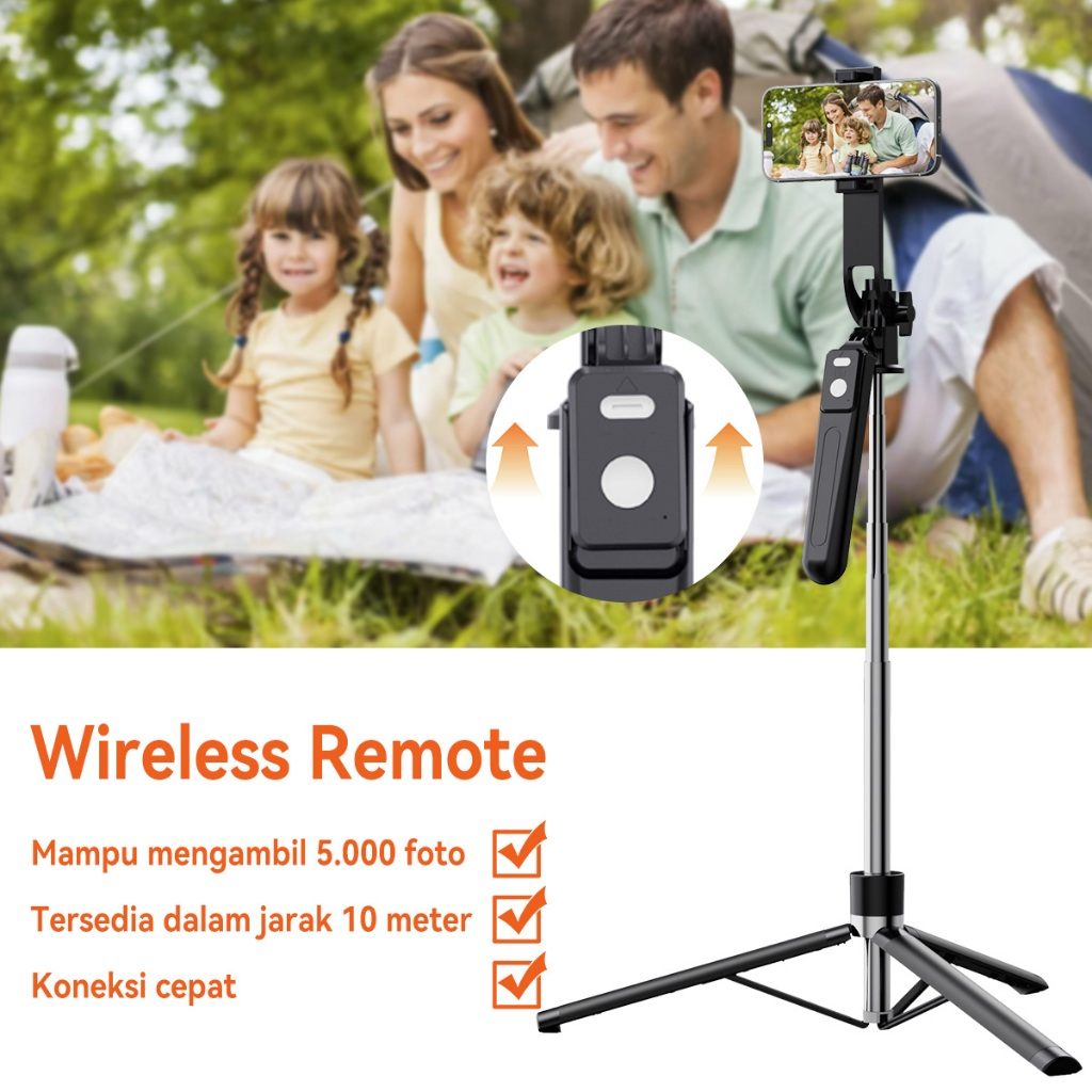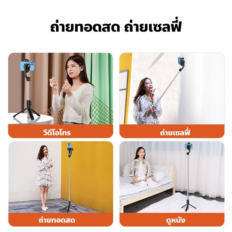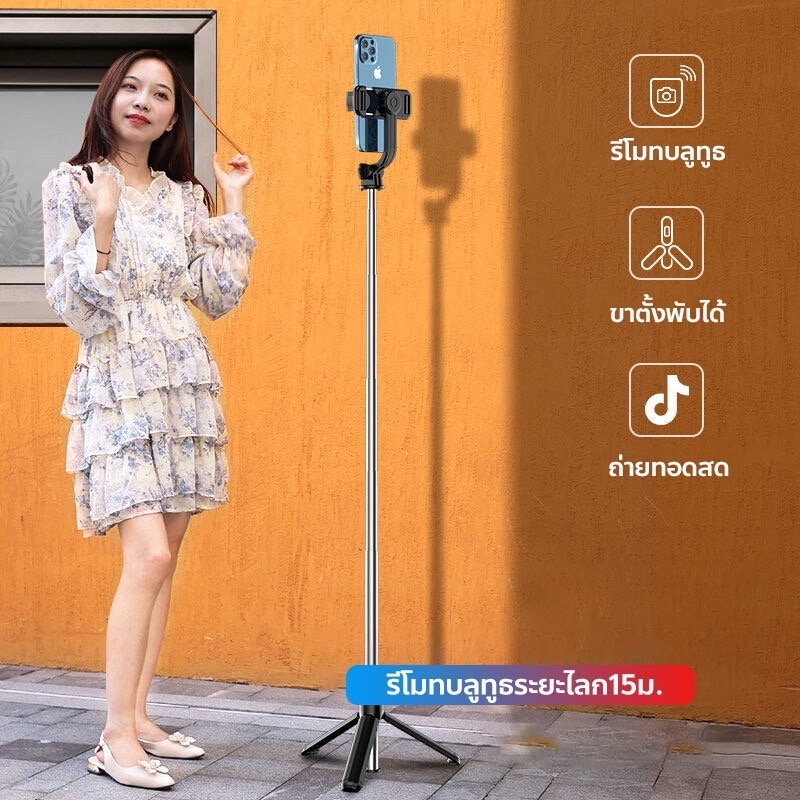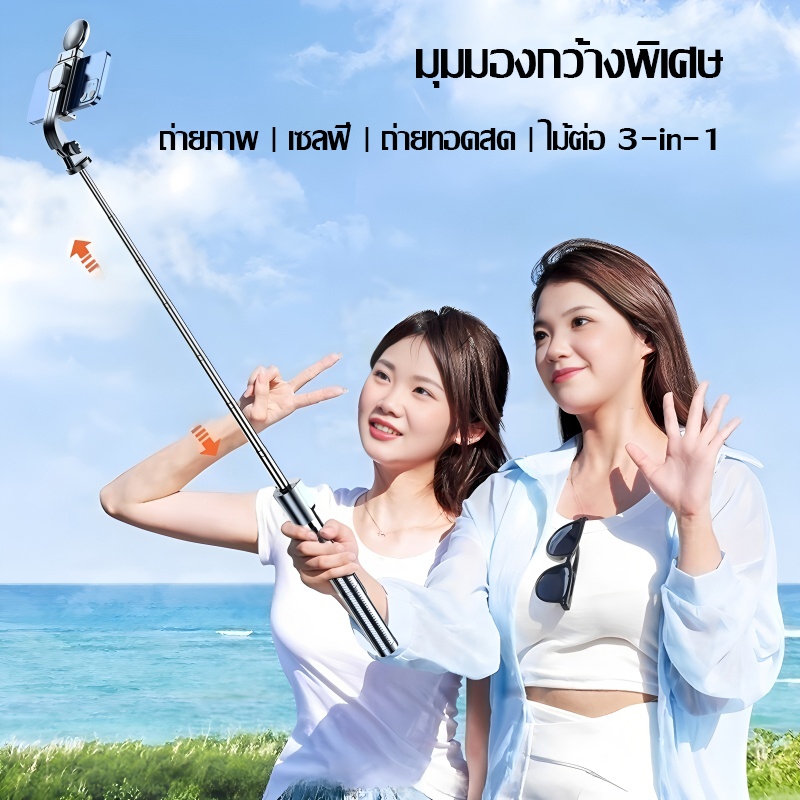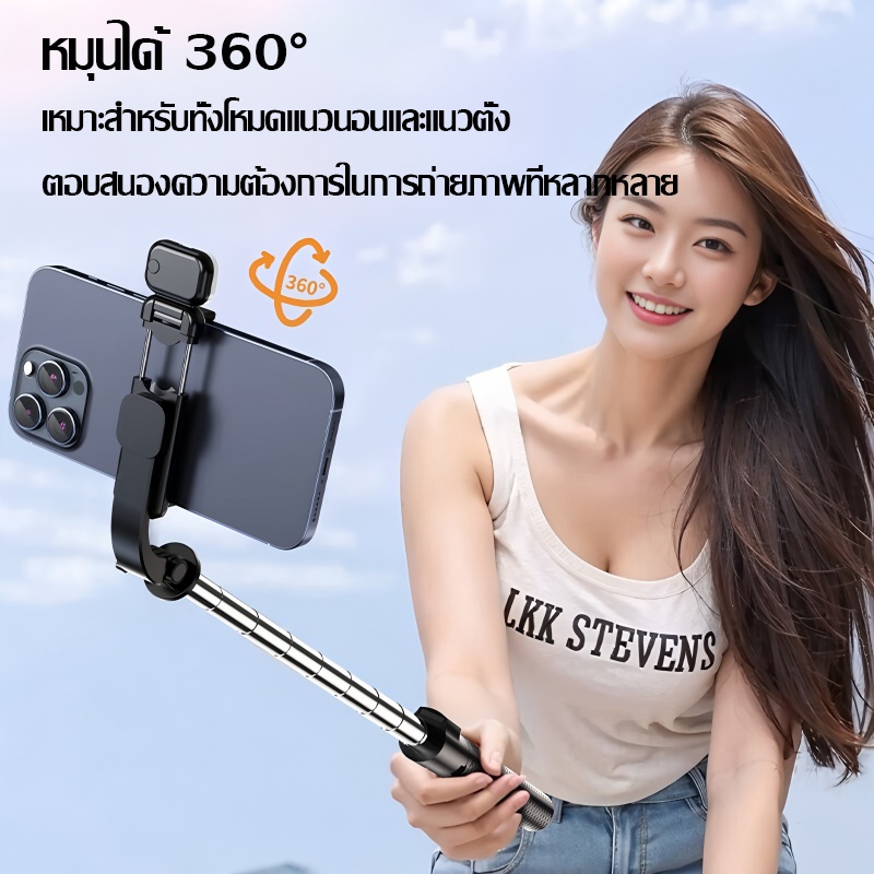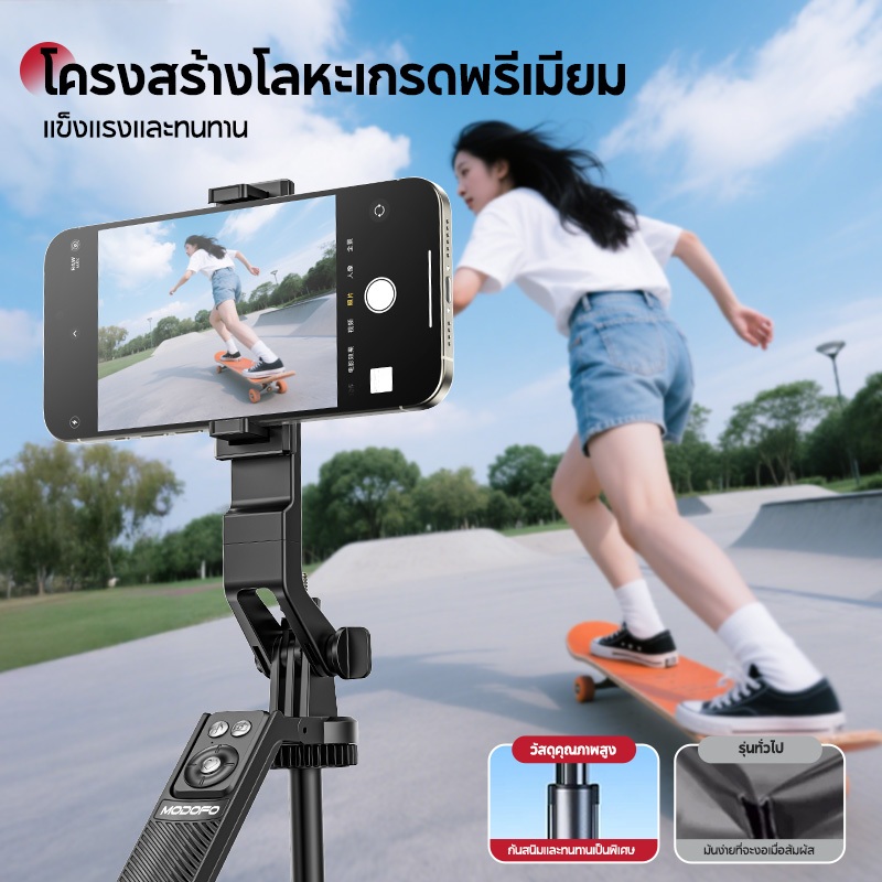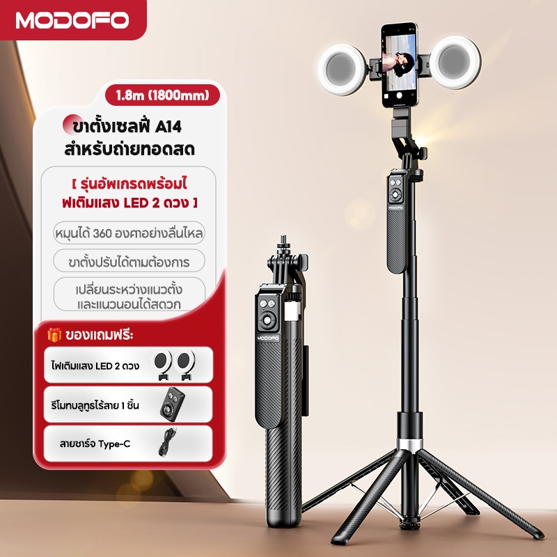 MODOFOไม้เซลฟี่ไร้สาย ขาตั้งกล้อง ไม้เซลฟี่บลูทูธ หมุนได้ 360 องศา พร้อมรีโมทบลูทูธ ยืดได้180ซม พร้อมไฟ