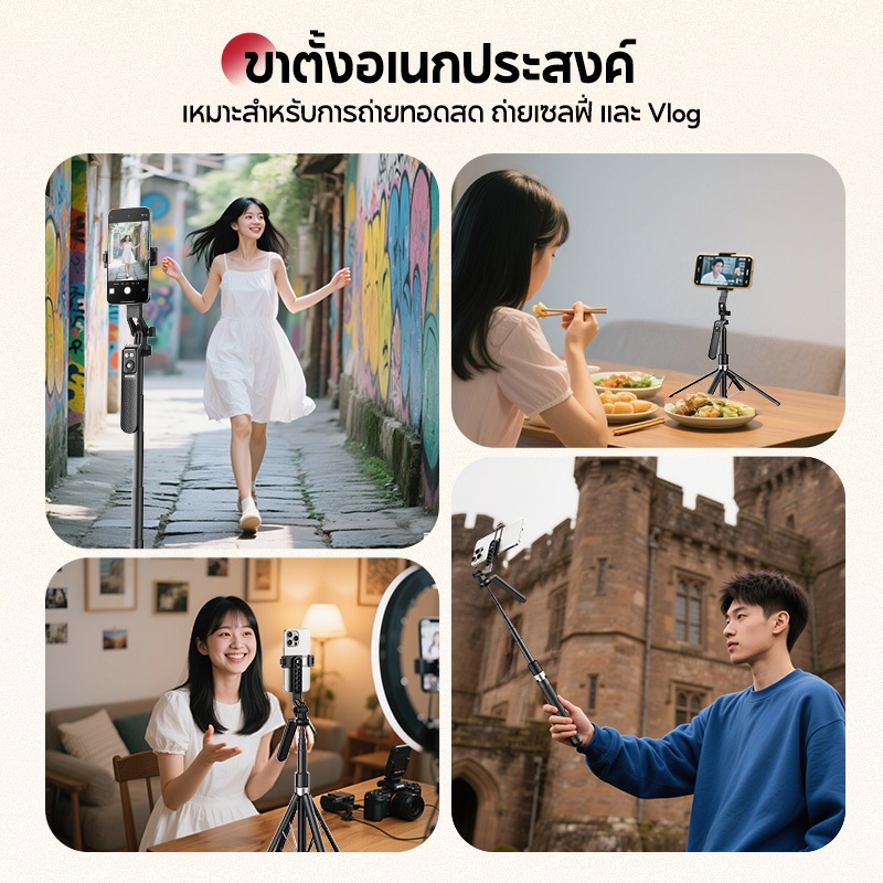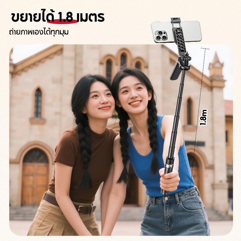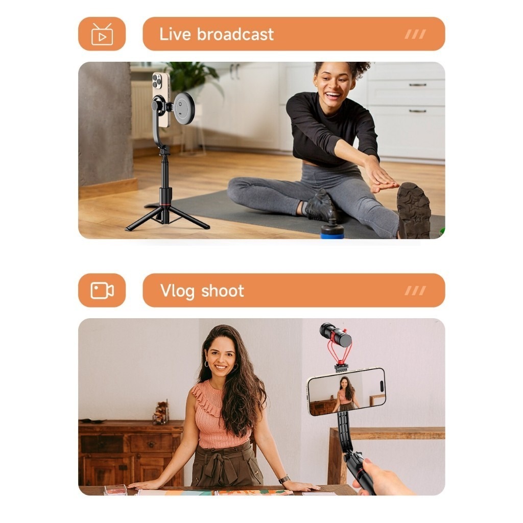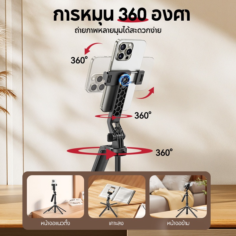 Magnetic Tripod for Phone ไม้เซลฟี่ ขาตั้งกล้อง แบบ MagSafe รีโมทเชื่อมต่อไกลถึง 10 ม ต่อไฟไลฟ์สด ถ่ายวีดีโอ Vlog
