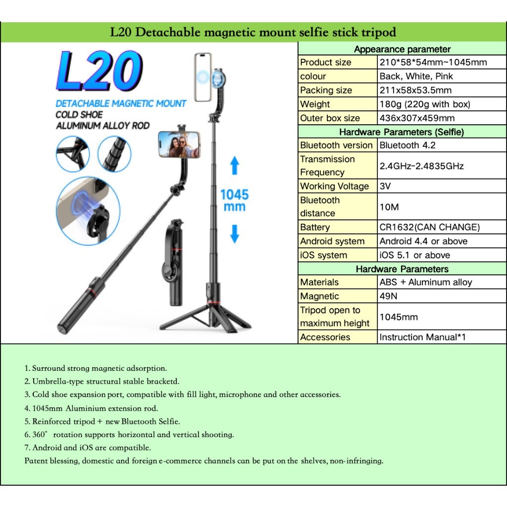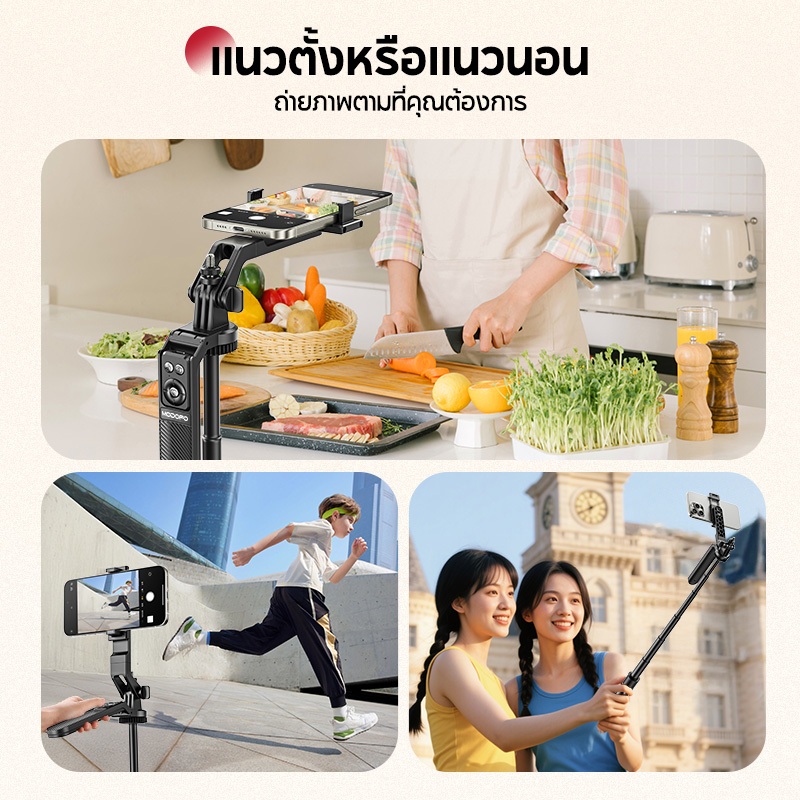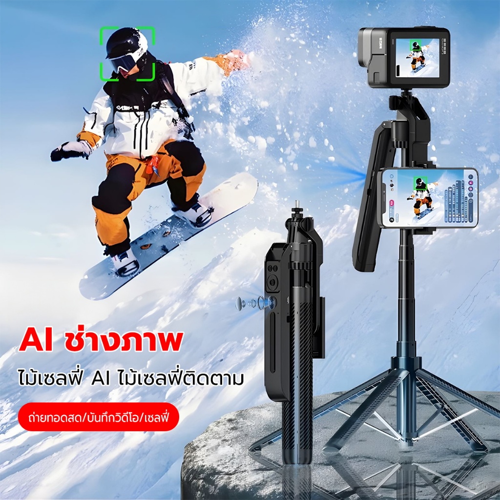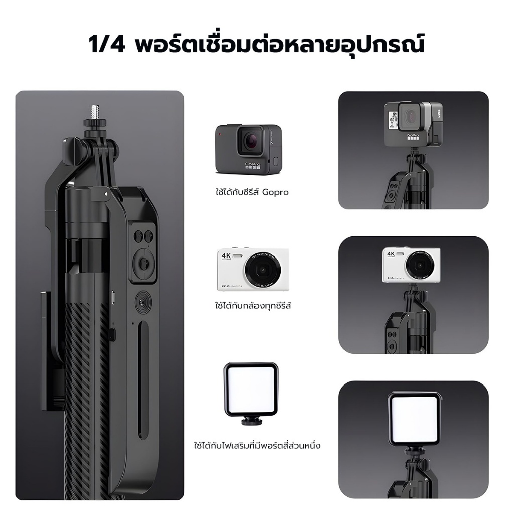 Magnetic Tripod for Phone ไม้เซลฟี่ ขาตั้งกล้อง แบบ MagSafe รีโมทเชื่อมต่อไกลถึง 10 ม ต่อไฟไลฟ์สด ถ่ายวีดีโอ Vlog