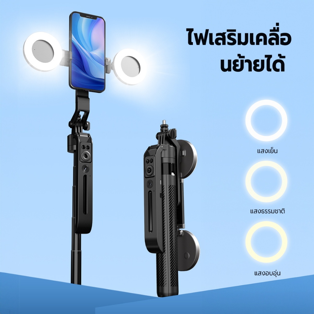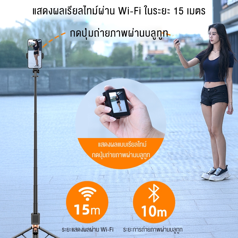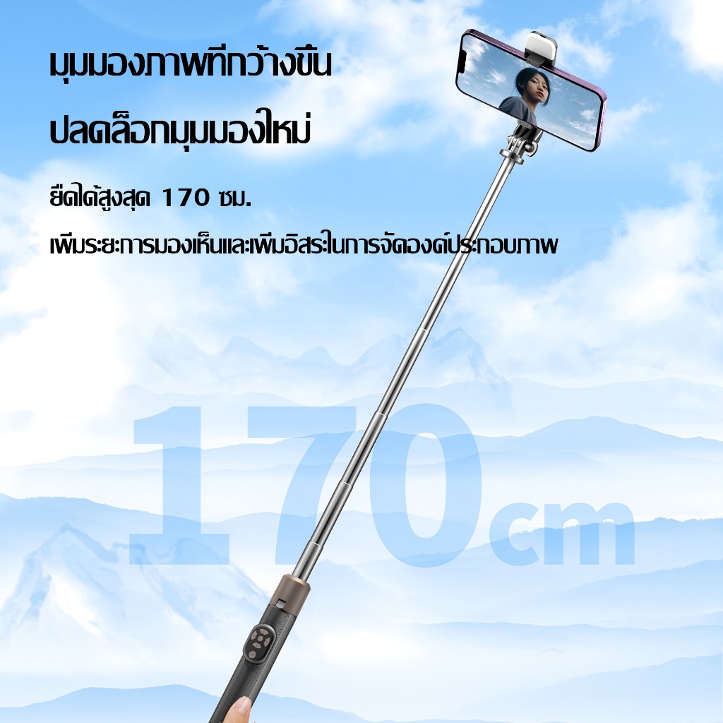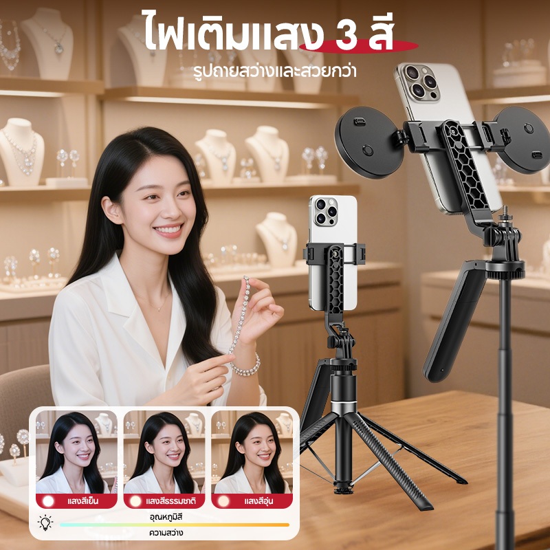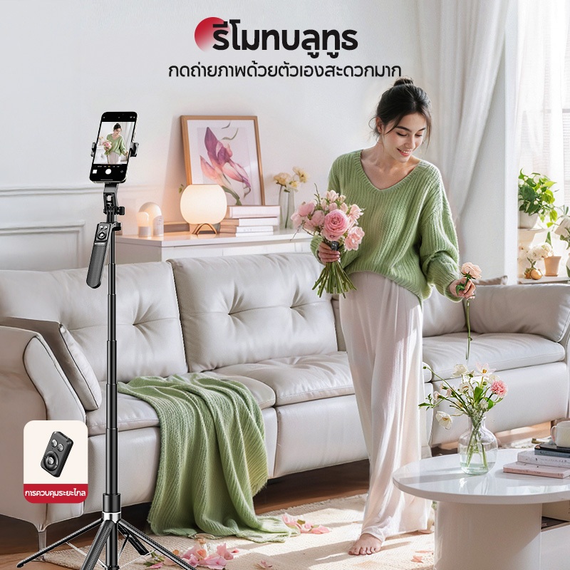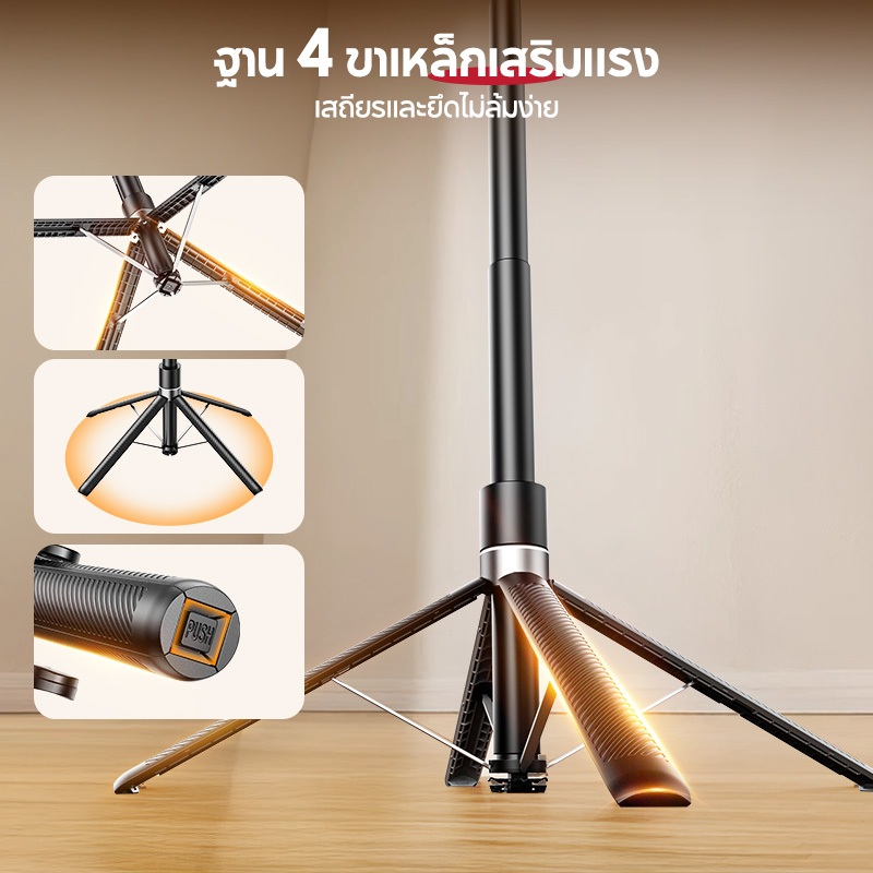 JQVITEK ขาตั้งโทรศัพท์เซลฟี่ TR13S กันกระแทก 1.70 ม. ขาตั้งอเนกประสงค์ หมุนได้ 360° พร้อมรีโมตคอนโทรลบลูทูธ LED