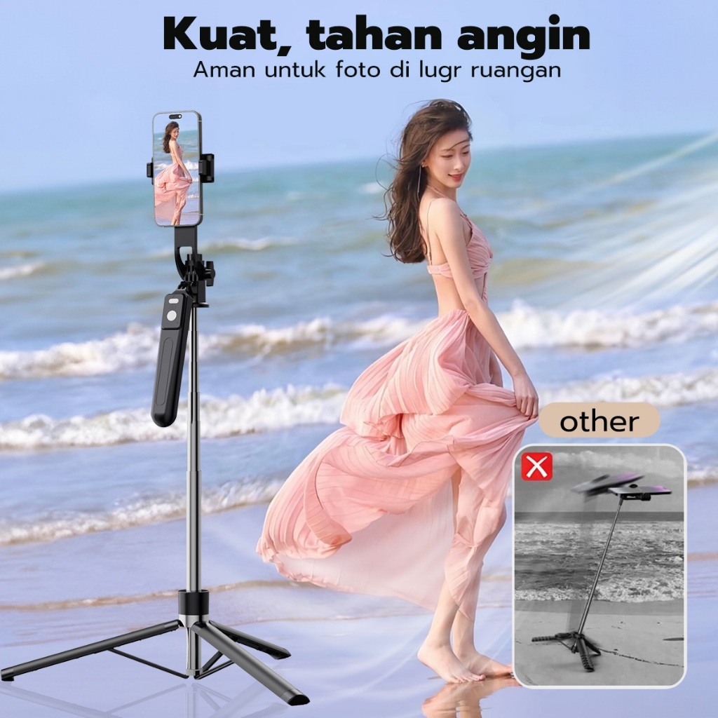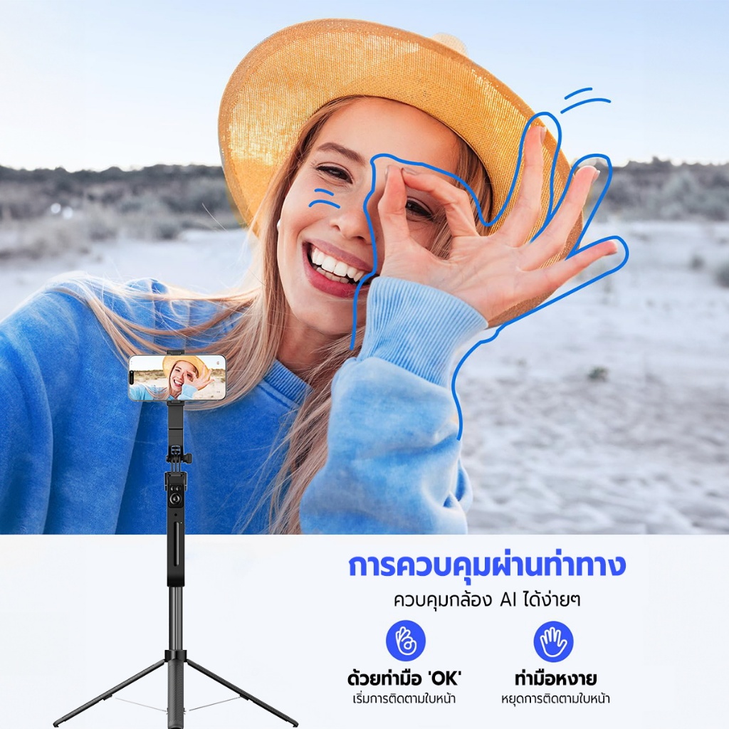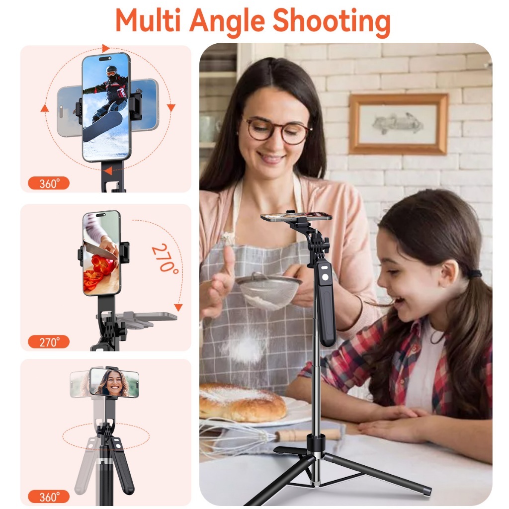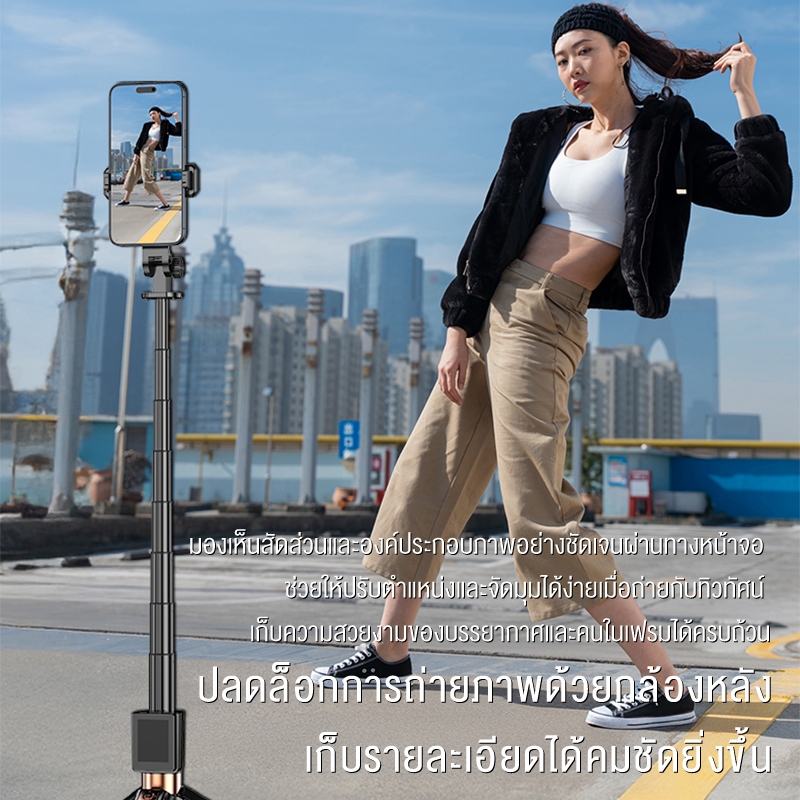 JQVITEK ขาตั้งโทรศัพท์เซลฟี่ TR13S กันกระแทก 1.70 ม. ขาตั้งอเนกประสงค์ หมุนได้ 360° พร้อมรีโมตคอนโทรลบลูทูธ LED