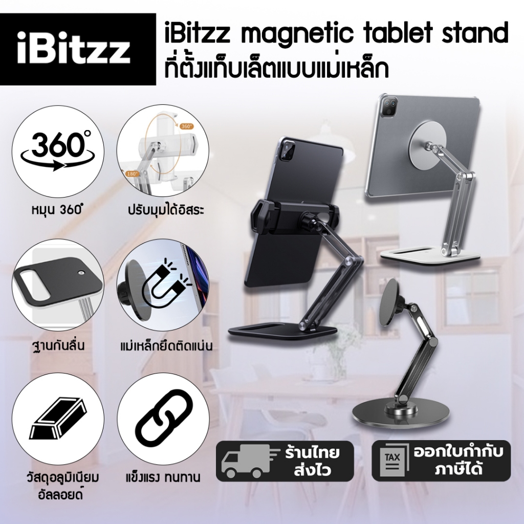 iBitzz magnetic tablet stan ขาตั้งแท็บเล็ตแม่เหล็ก ขาตั้งแม่เหล็ก ที่วางมือถือ ที่วางแท็บเล็ต ขาตั้งแท็บเล็ต