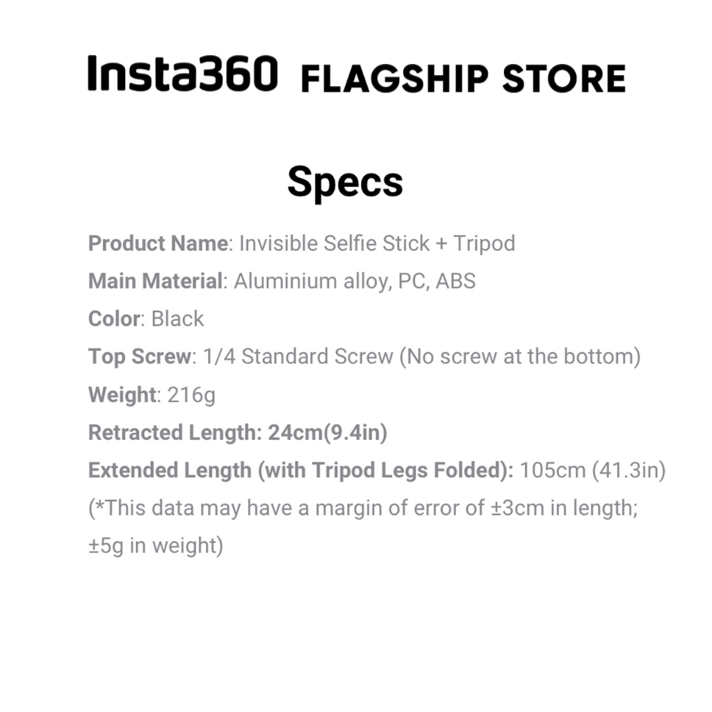 Insta360 ไม้เซลฟี่ 2IN1 Invisible Selfie Stick + Tripod ขาตั้งกล้อง กล้องแอคชั่น 360 Action Camera