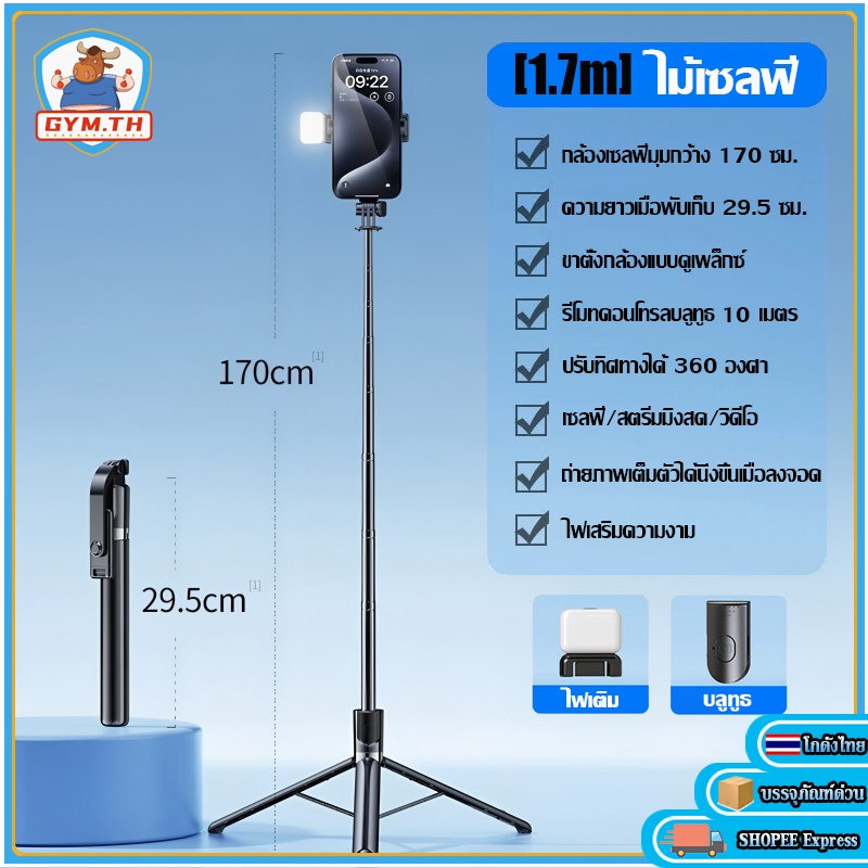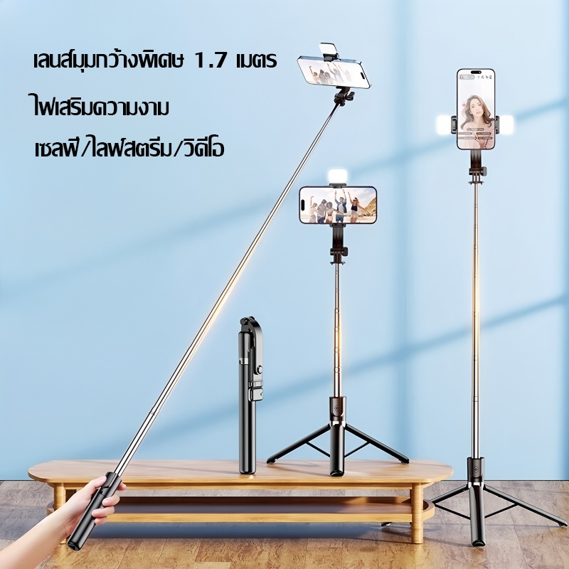 Magnetic Tripod ขาตั้งมือถือ ยืดได้ถึง 170ซม ไม้เซลฟี่ หมุนได้ 360° พร้อมรีโมตคอนโทรลบลูทูธ LED เซลฟี่/ไลฟ์สตรีม/วิดีโอ