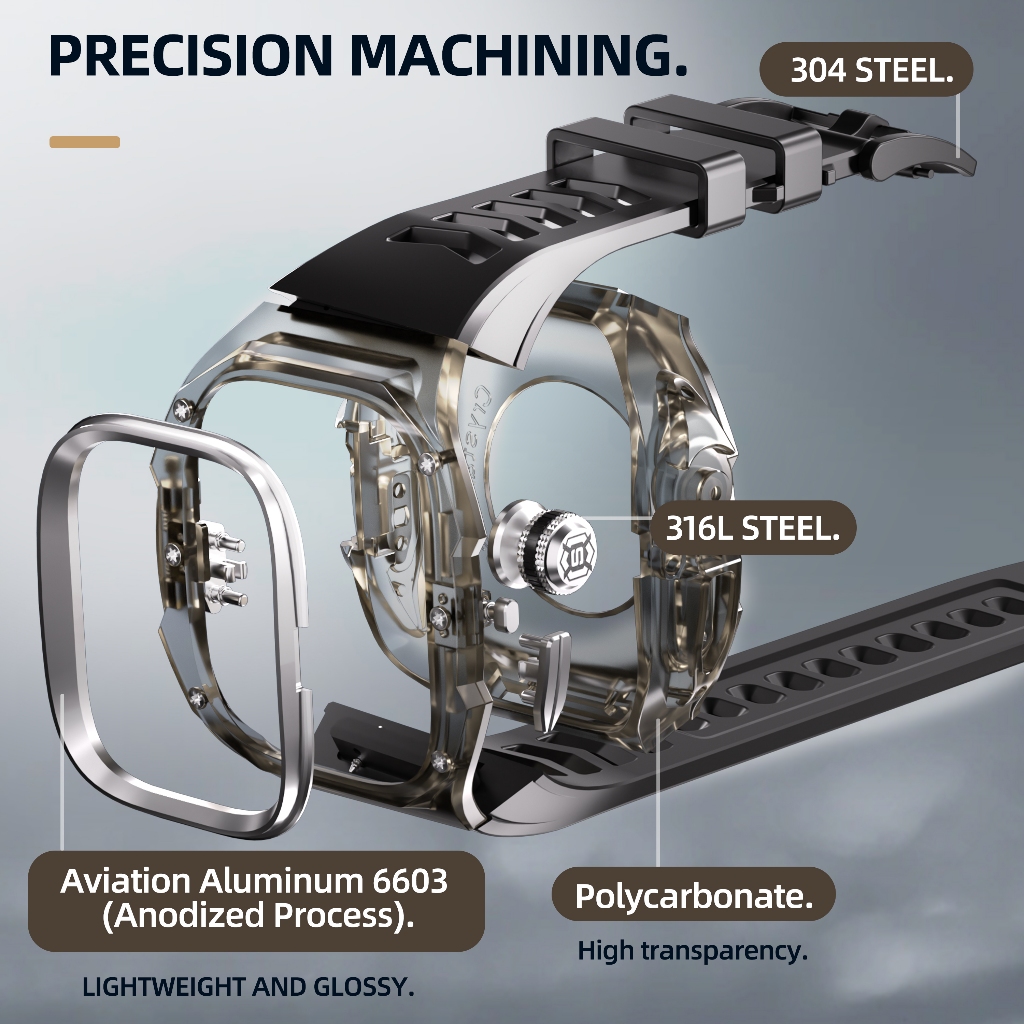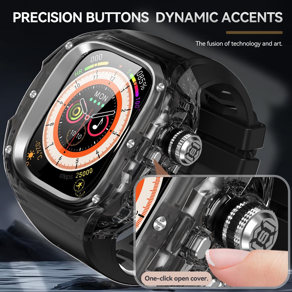 โปร่งใส พลอยเทียม ดัดแปลงป้องกันการตกเปลือกป้องกันฝาครอบเข้ากันได้สําหรับ แอปเปิล ดู พิเศษ 1/2/3 49 มม. สายนาฬิกาชิ้นเดียว