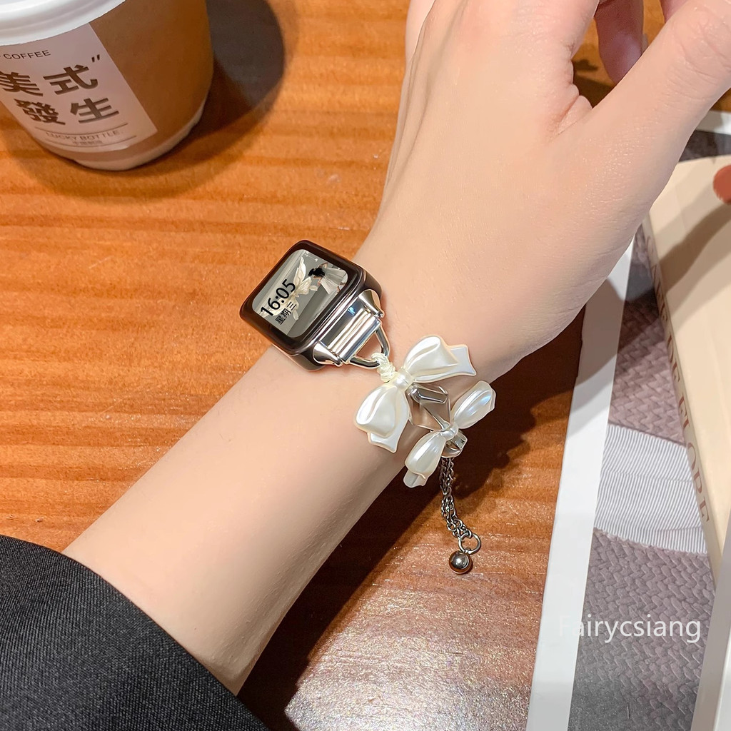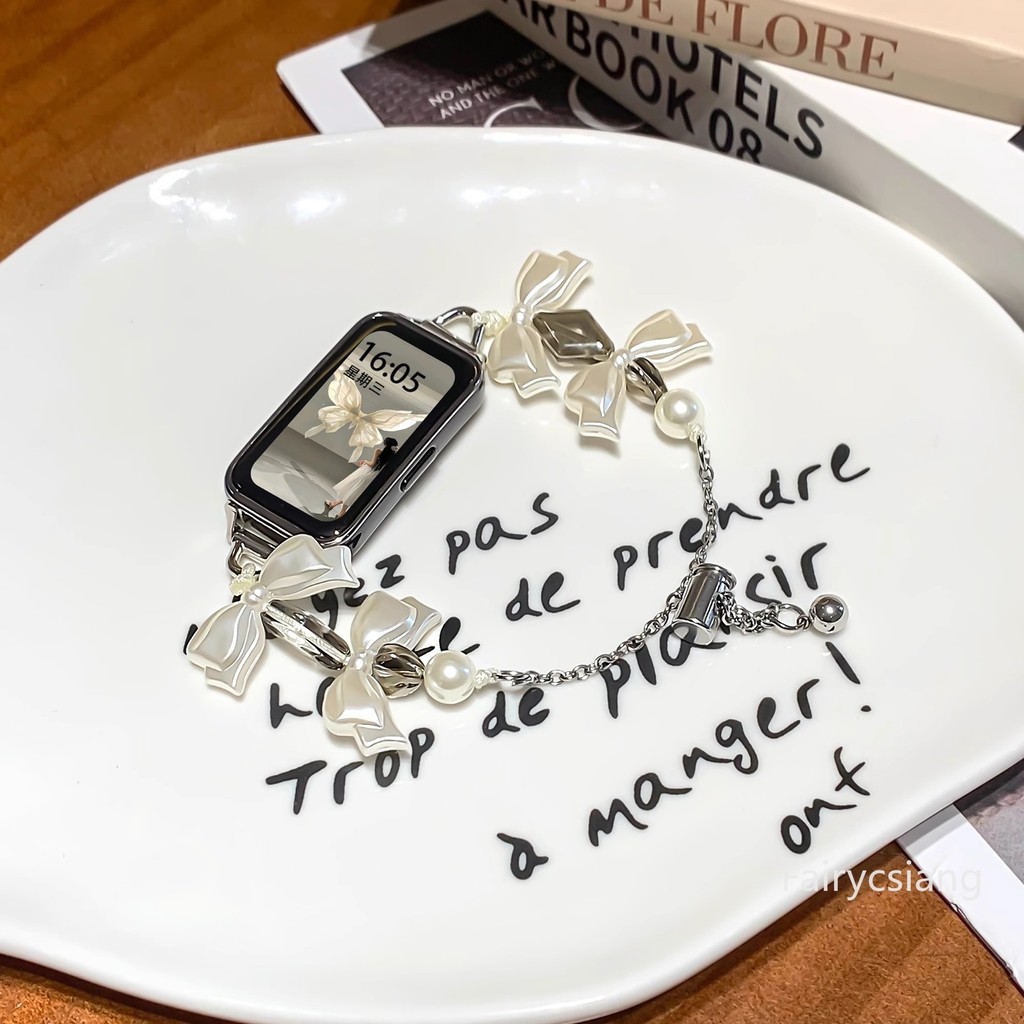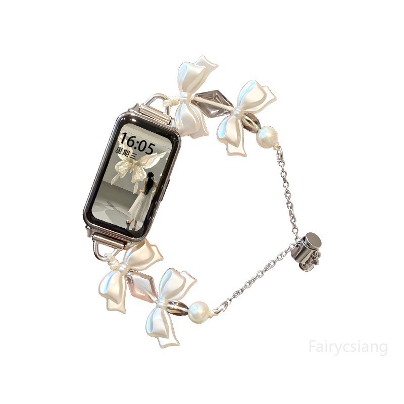 โบว์เพิร์ลสายสําหรับ Huawei Band 10 9 8 สําหรับ Honor 7 6 สร้อยข้อมือสําหรับ Huawei Band Fit3 Fit2 สายรัด