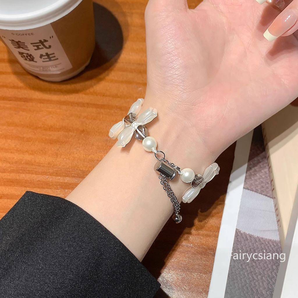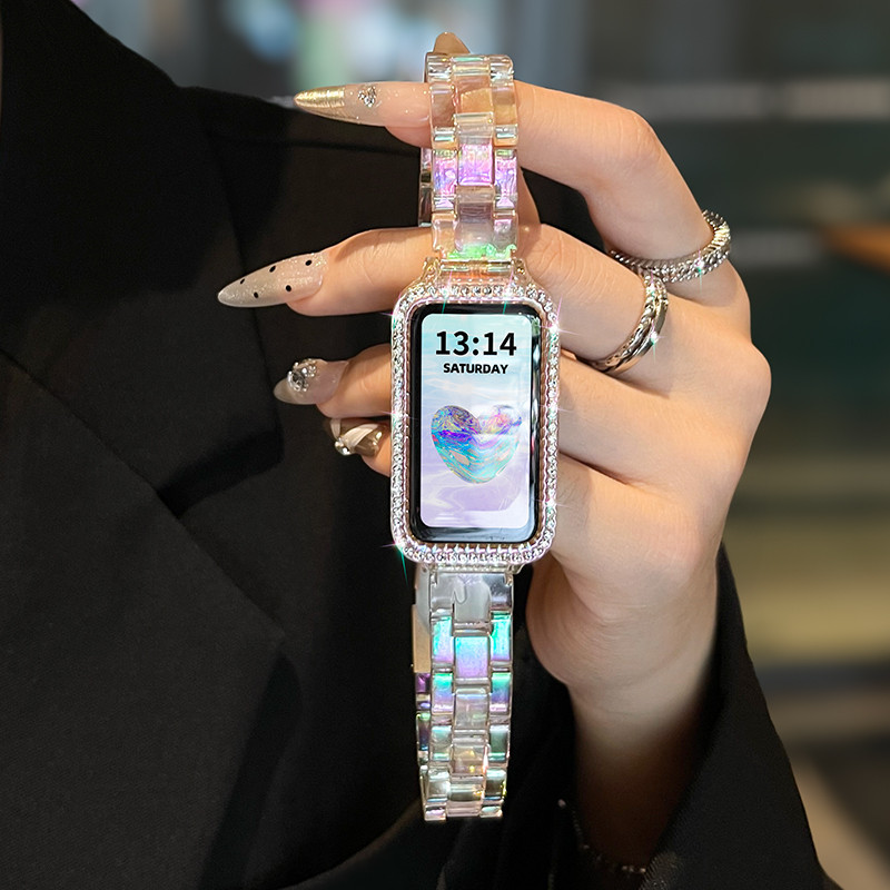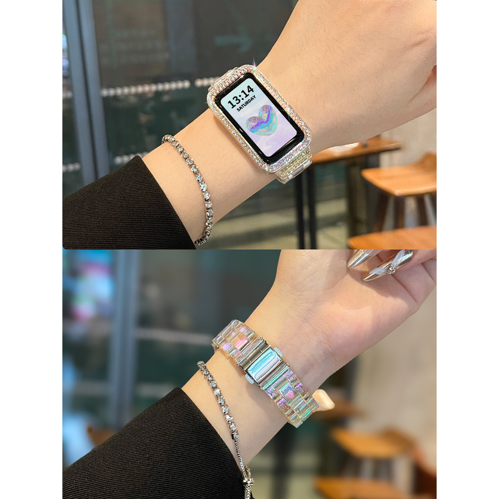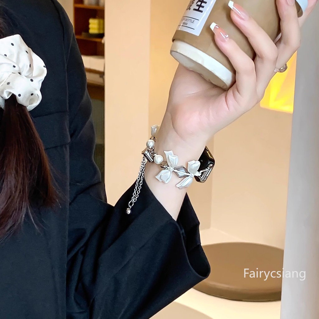 โบว์เพิร์ลสายสําหรับ Huawei Band 10 9 8 สําหรับ Honor 7 6 สร้อยข้อมือสําหรับ Huawei Band Fit3 Fit2 สายรัด