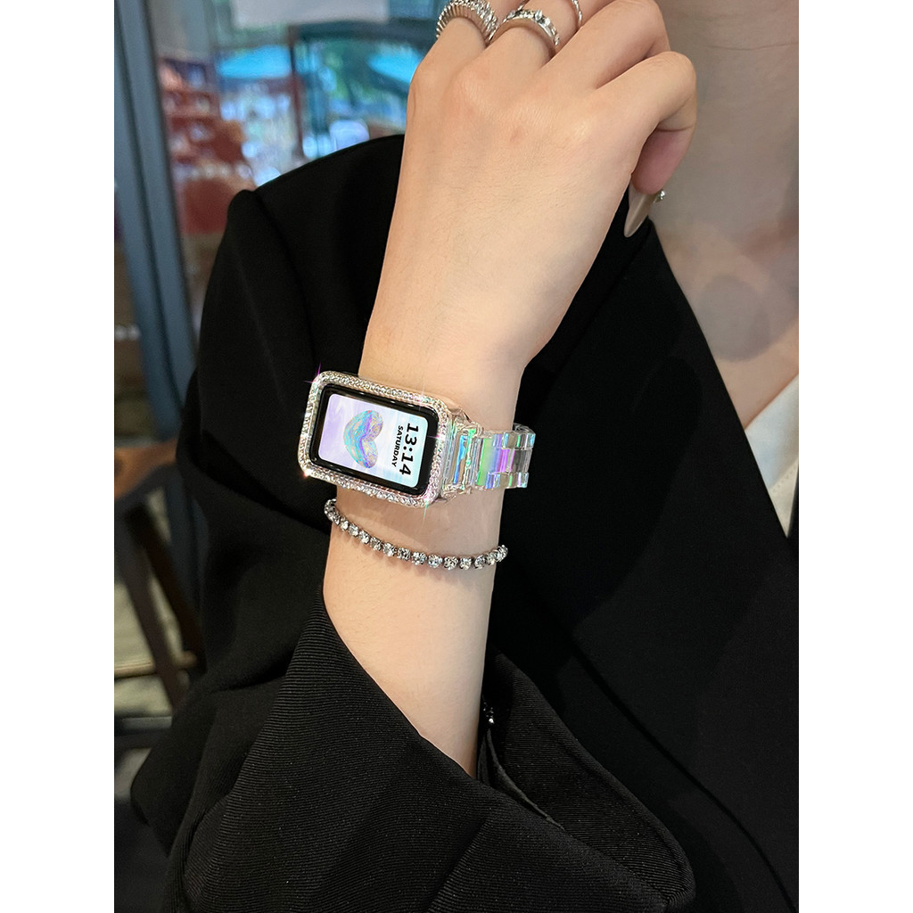 ใหม ่ สายเรซิ ่ นพร ้ อมเพชรป ้ องกันสําหรับ Samsung Galaxy Fit 3 สมาร ์ ทสร ้ อยข ้ อมือ Samsung Galaxy Fit 3 SM-R390 สายนาฬิกาเปลี ่ ยน