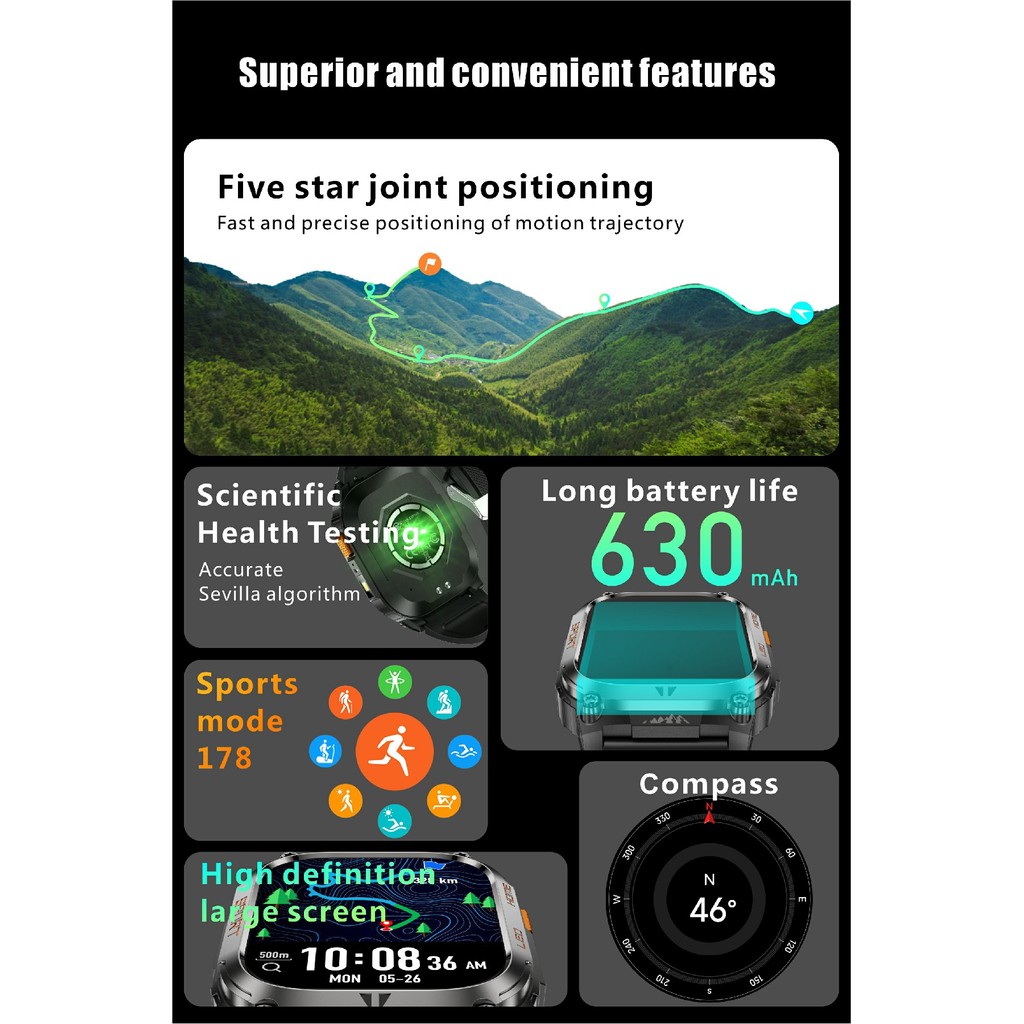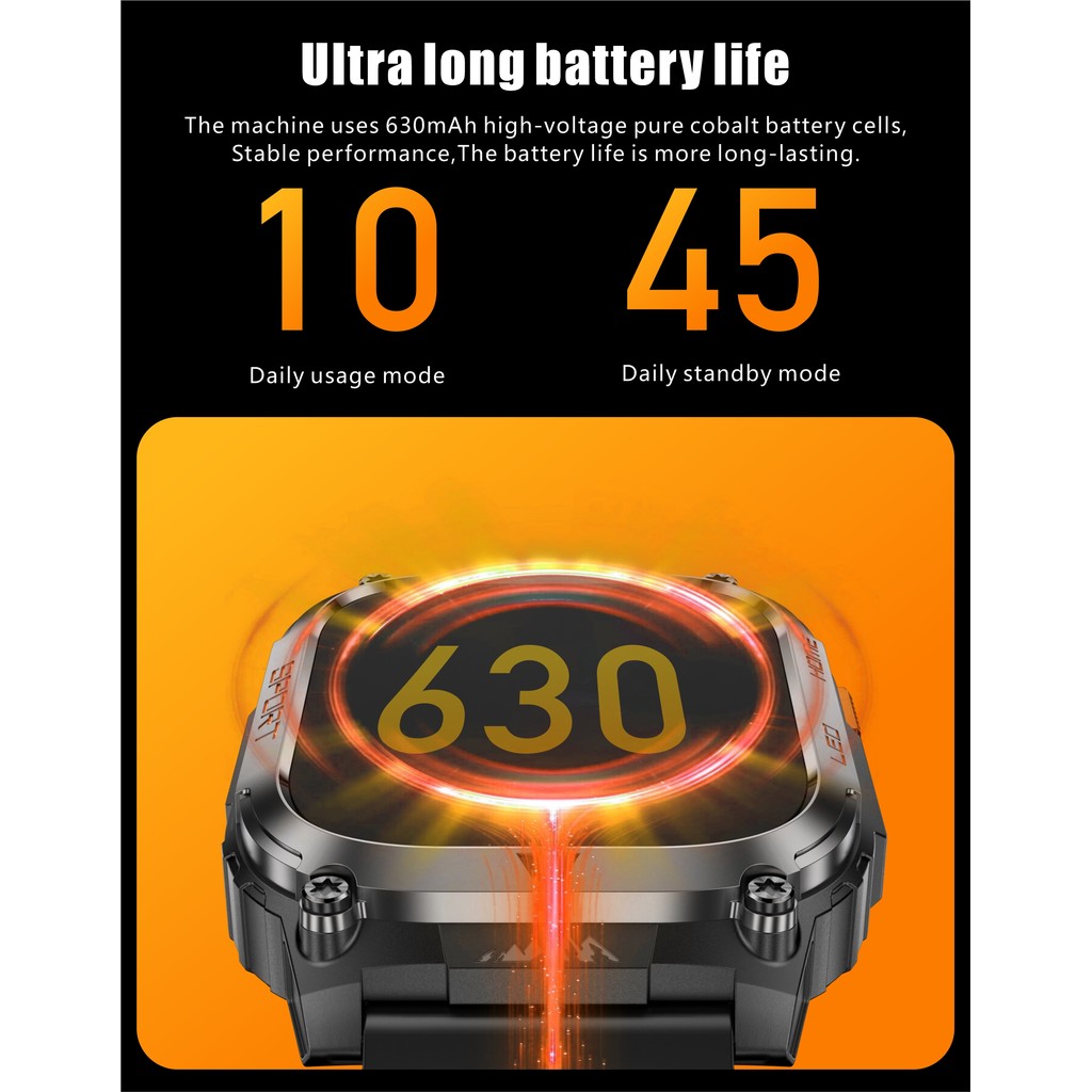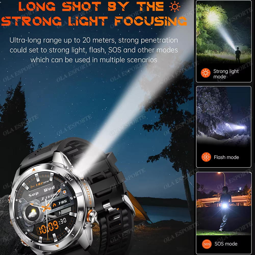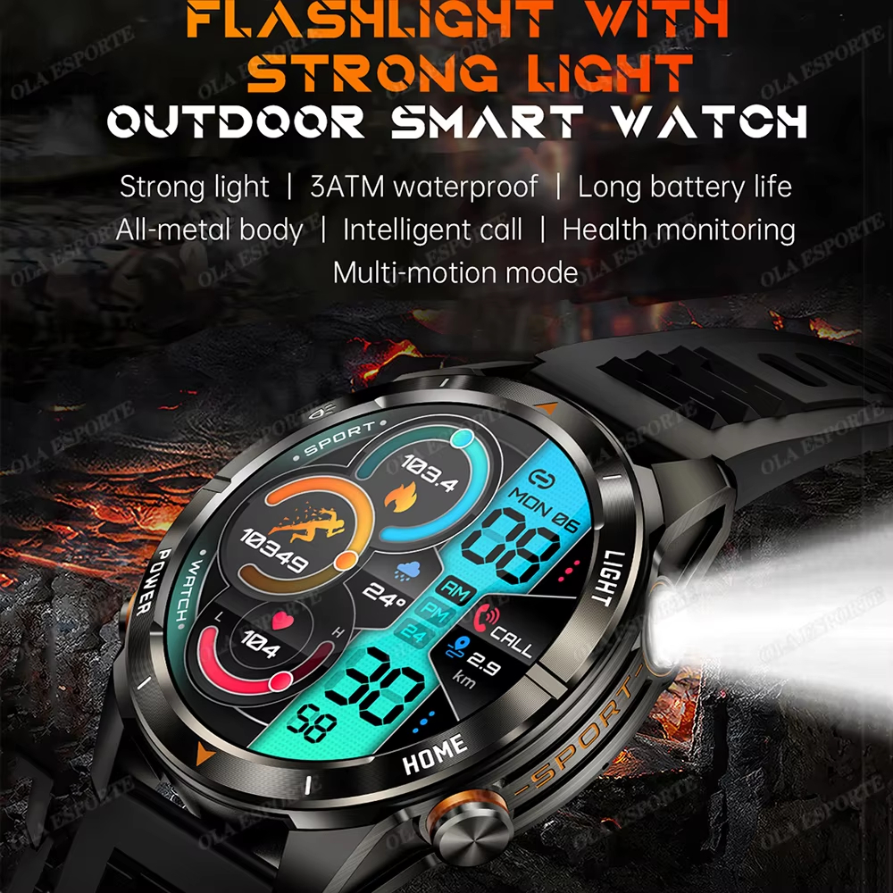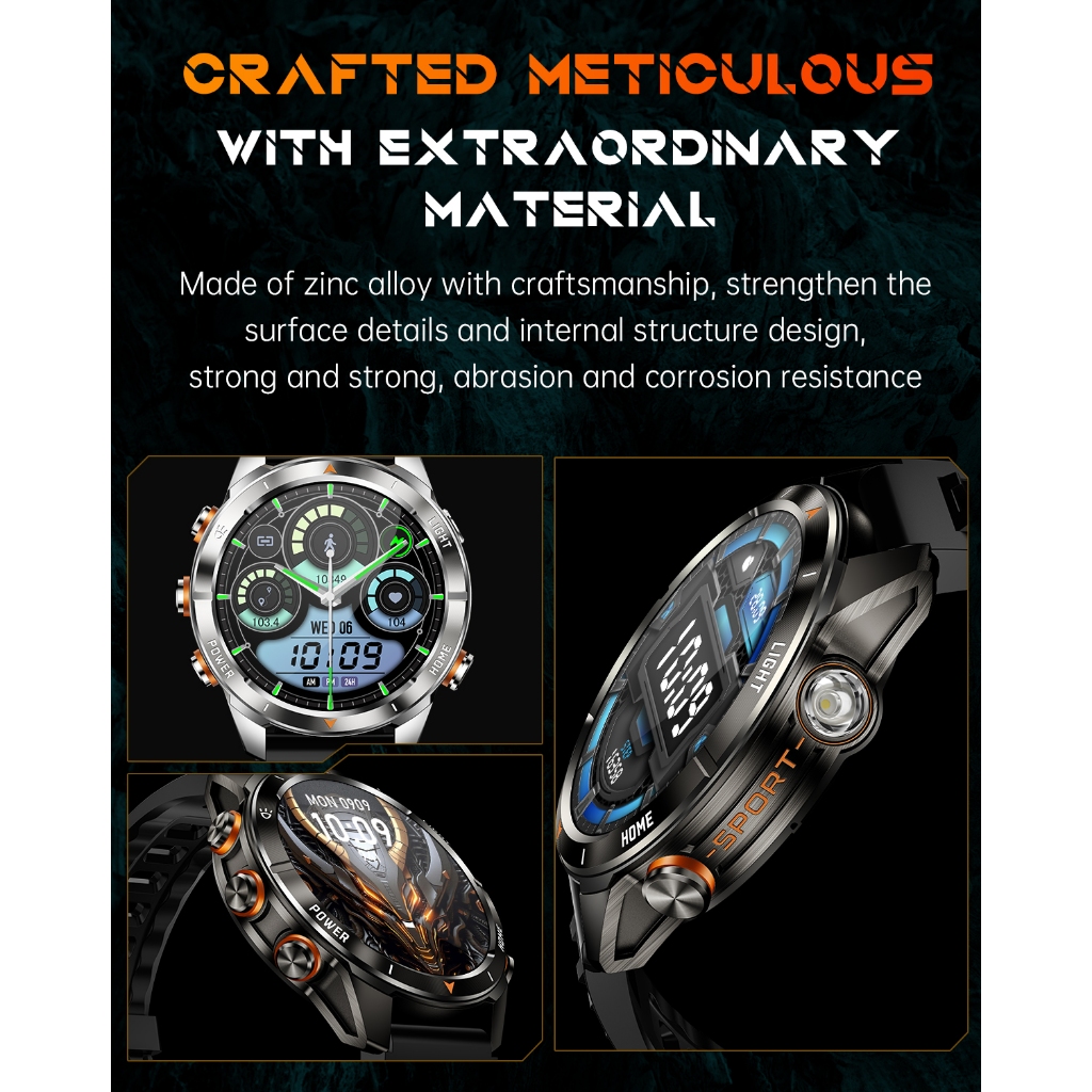 2025 เคที80 สมาร์ทนาฬิกา 3ATM กันน้ําการออกแบบเดิมผู้ชายบลูทูธโทรสุขภาพการตรวจสอบด้วยไฟฉายที่แข็งแกร่ง100 + โหมดกีฬาสมาทวอช